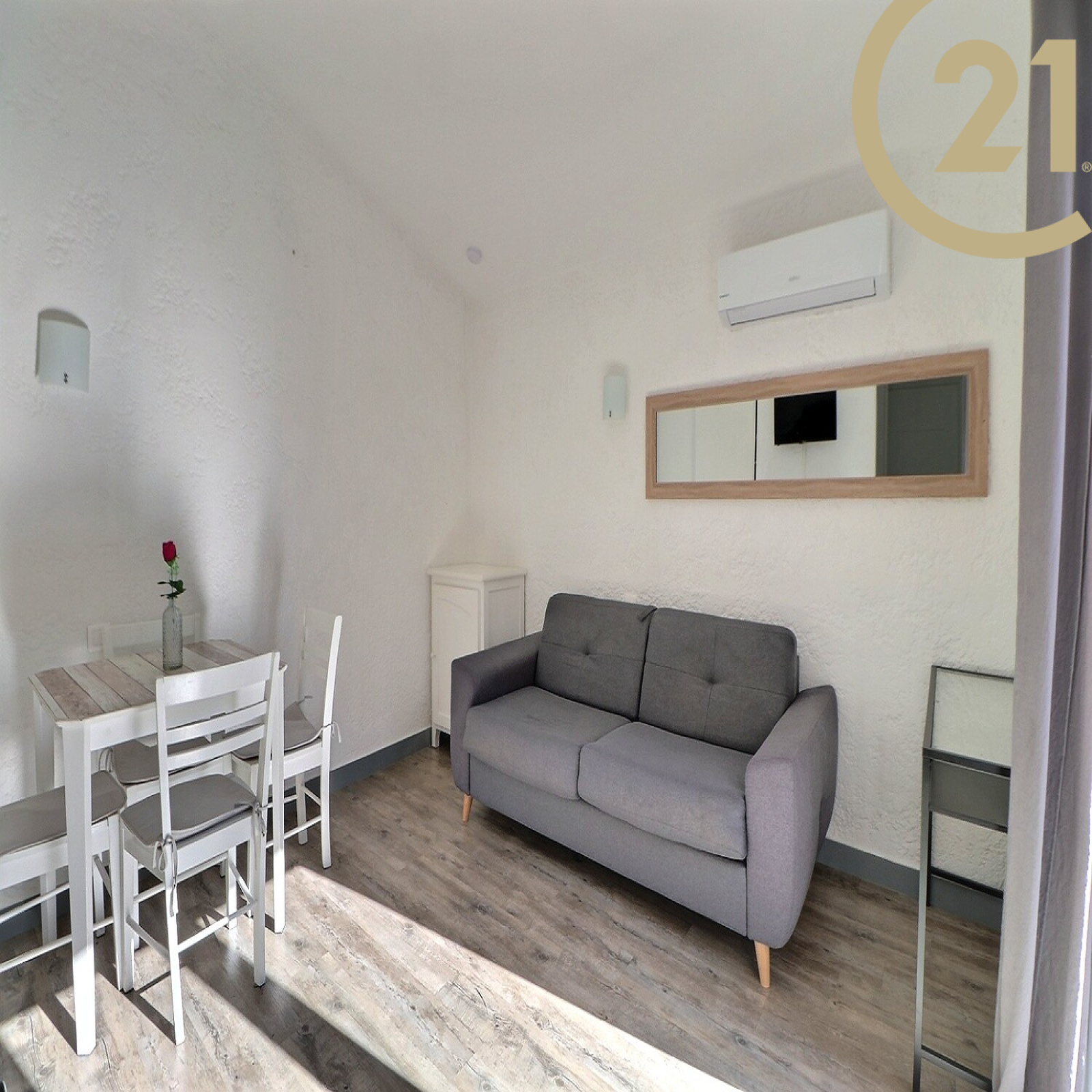 Terrasse sans vis-à-vis ni voisin au-dessus. Climatisation réversible.