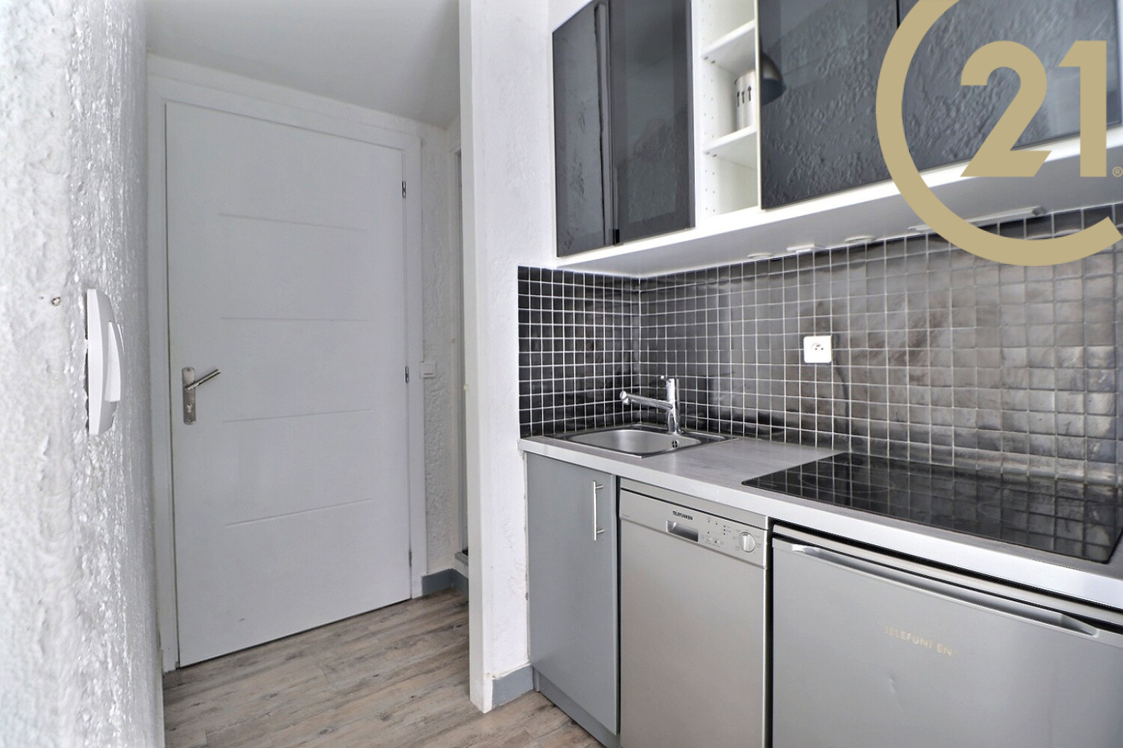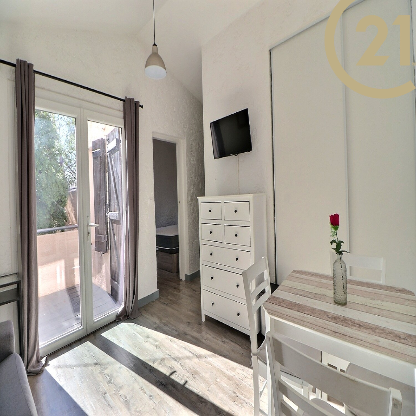 Ce bel appartement au 2 éme et dernier étage avec terrasse offre : un séjour donnant accès à une terrasse exposée sud/ouest, une kitchenette, une chambre, une salle d'eau et des WC.
