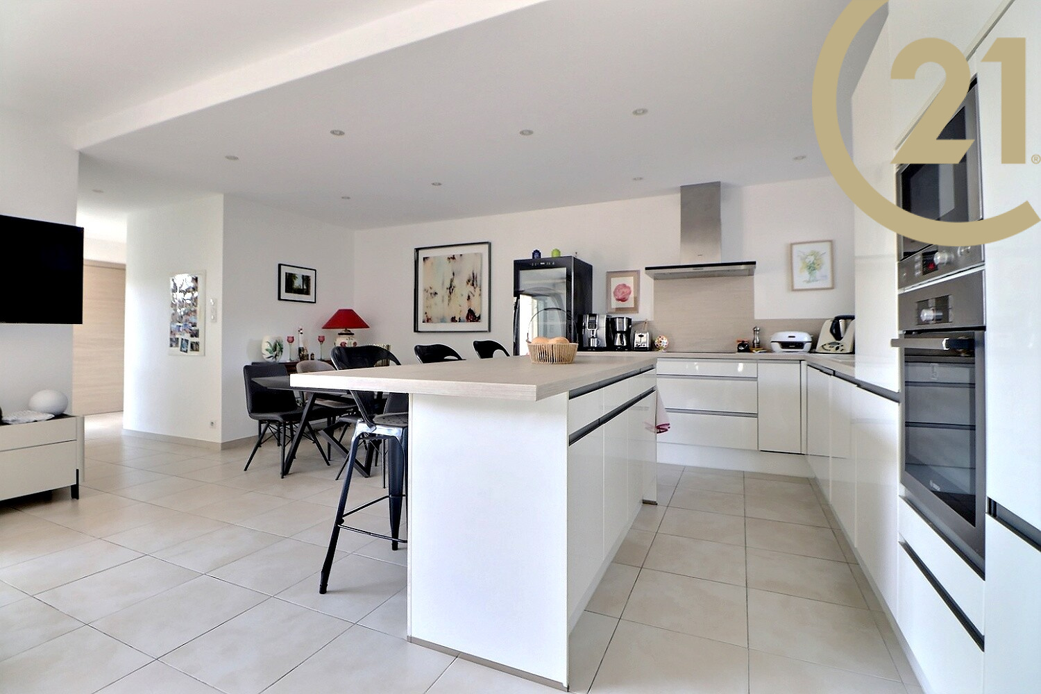 Une agréable pièce de vie avec cuisine ouverte (équipée et aménagée) prolongée par une grande terrasse et l'espace piscine complètent le rez-de-chaussée.