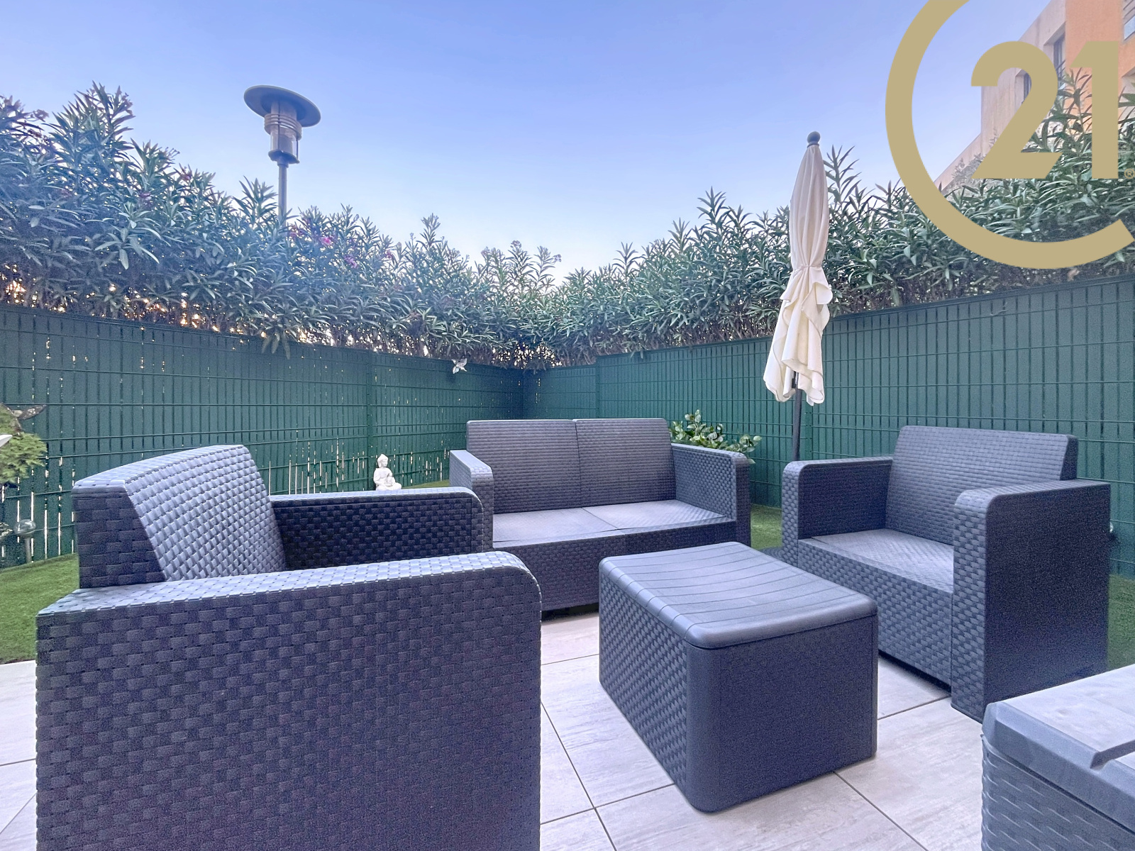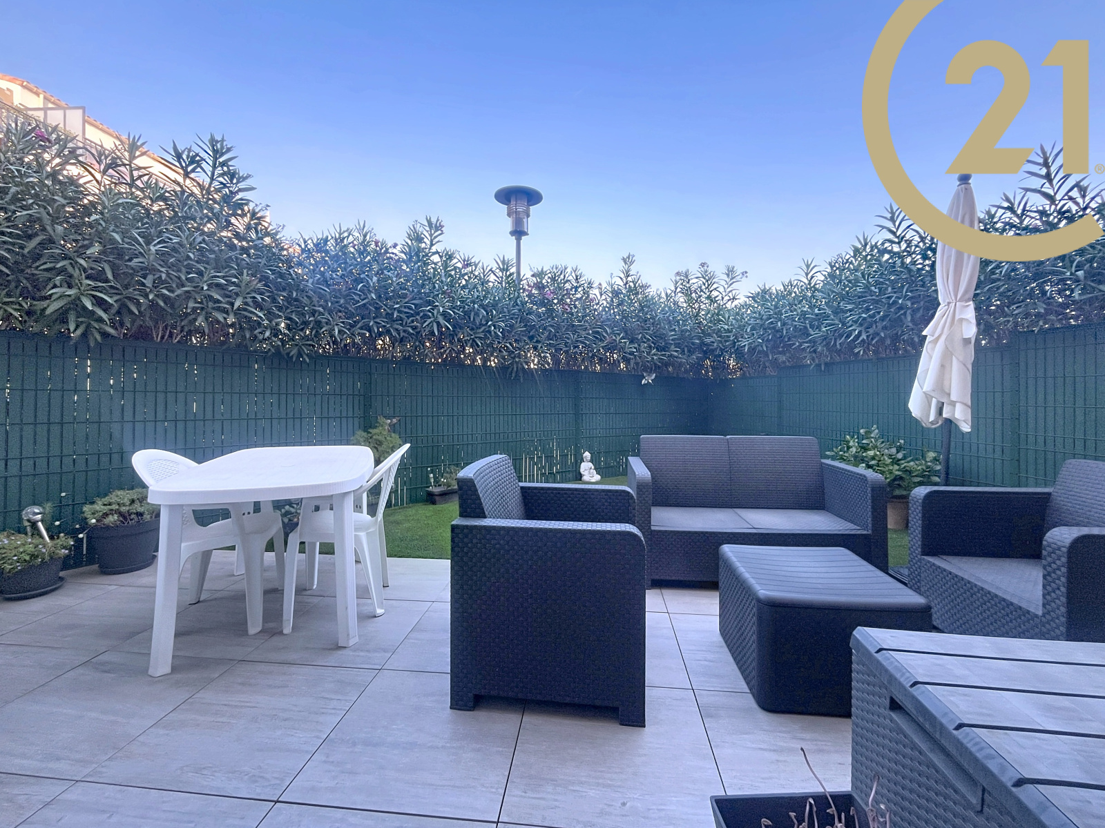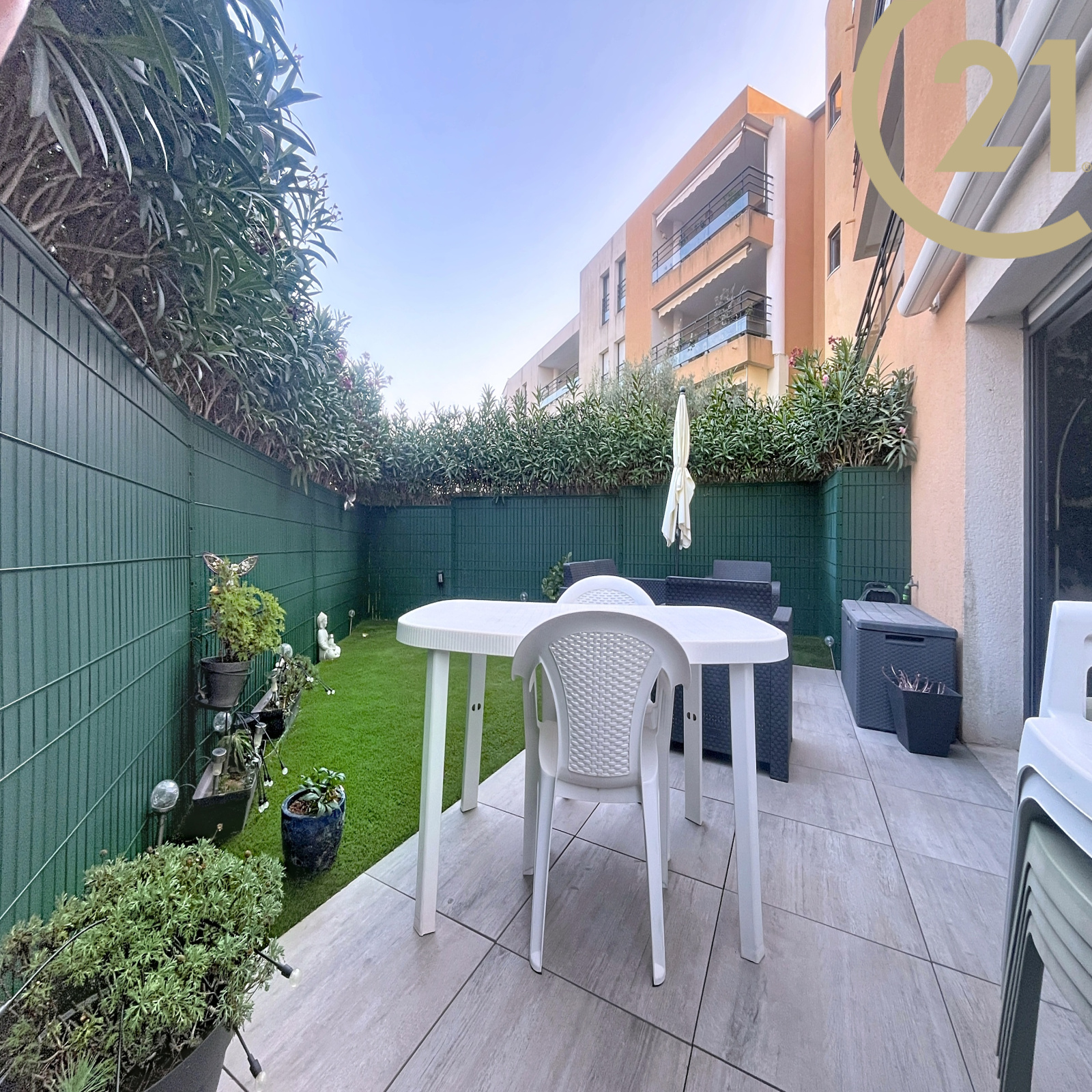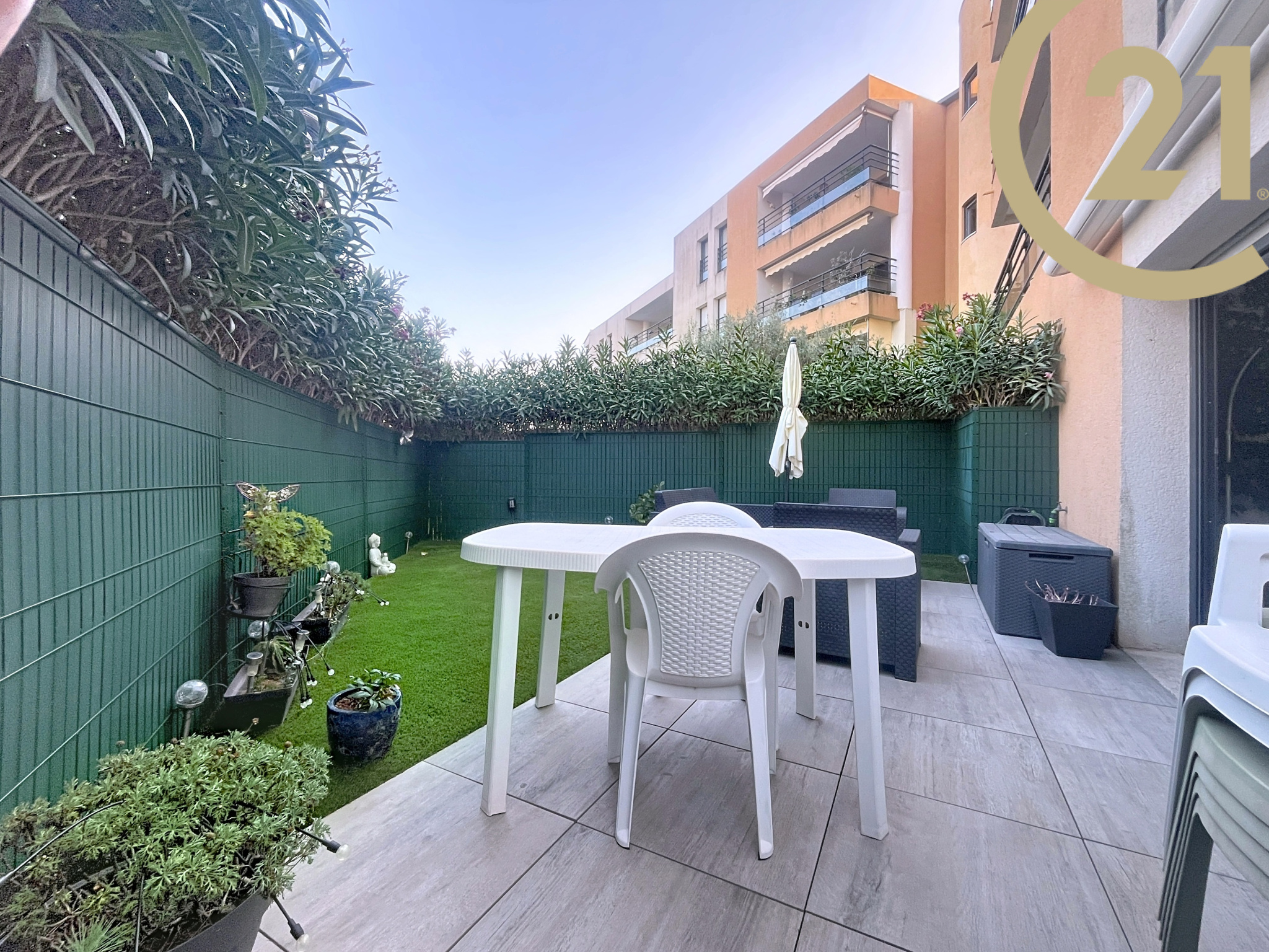 VENTE EN EXCLUSIVITE - SAINT RAPHAEL - Dans une résidence de standing sécurisée avec piscine, venez découvrir ce bel appartement 2-3 pièces AU CALME en rez de jardin composé d'une entrée, d'un séjour-cuisine donnant sur un joli jardin exposé EST, d'une chambre avec placard, d'une salle d'eau, d'une buanderie et d'une pièce pouvant faire office de chambre d'appoint.