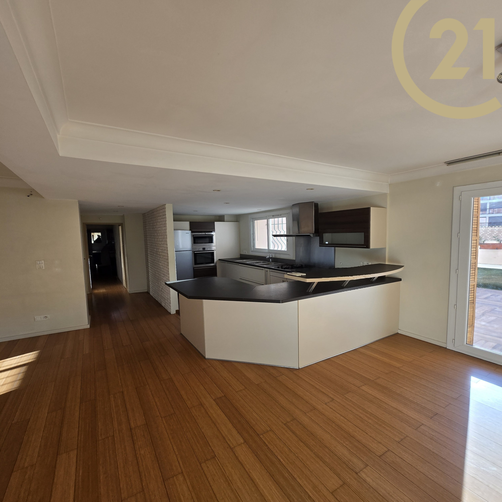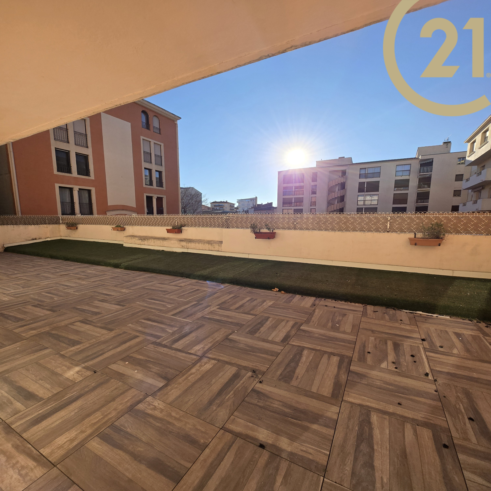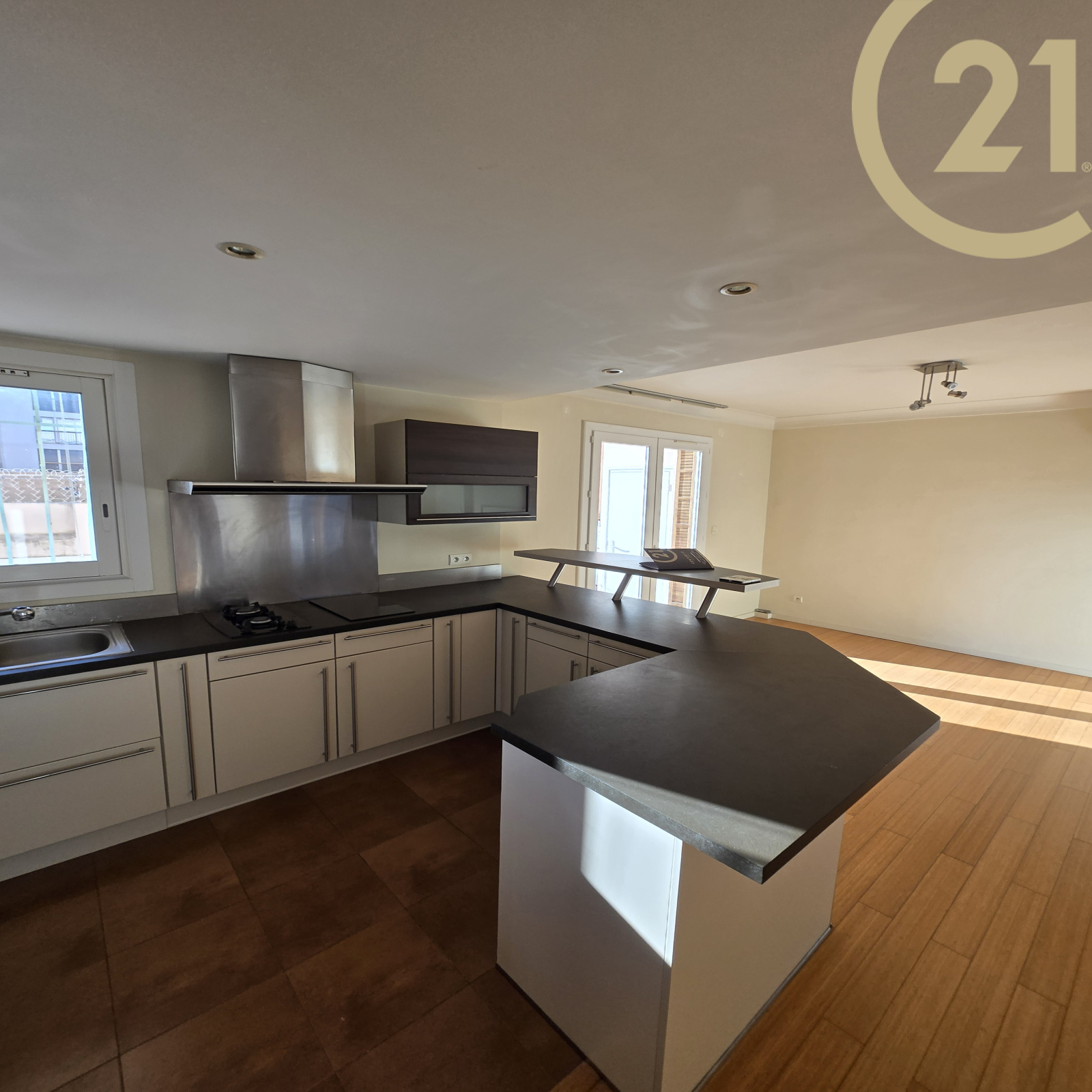 VENTE - SAINT RAPHAEL - Spacieux appartement 4 pièces de 95 m² idéalement situé dans le centre-ville de Saint-Raphaël, à proximité immédiate de tous les commerces, de la gare et des plages. Cet appartement traversant offre de beaux volumes. Rénové récemment avec goût, il se compose d'une entrée, d'un spacieux séjour/salle à manger avec cheminée et climatisation donnant sur une immense terrasse de 74m² éxposée sud, d'une grande cuisine récente entièrement équipée, de 3 grandes chambres, d'une salle d'eau et d'un wc indépendant. Deux beaux balcons complètent le bien.