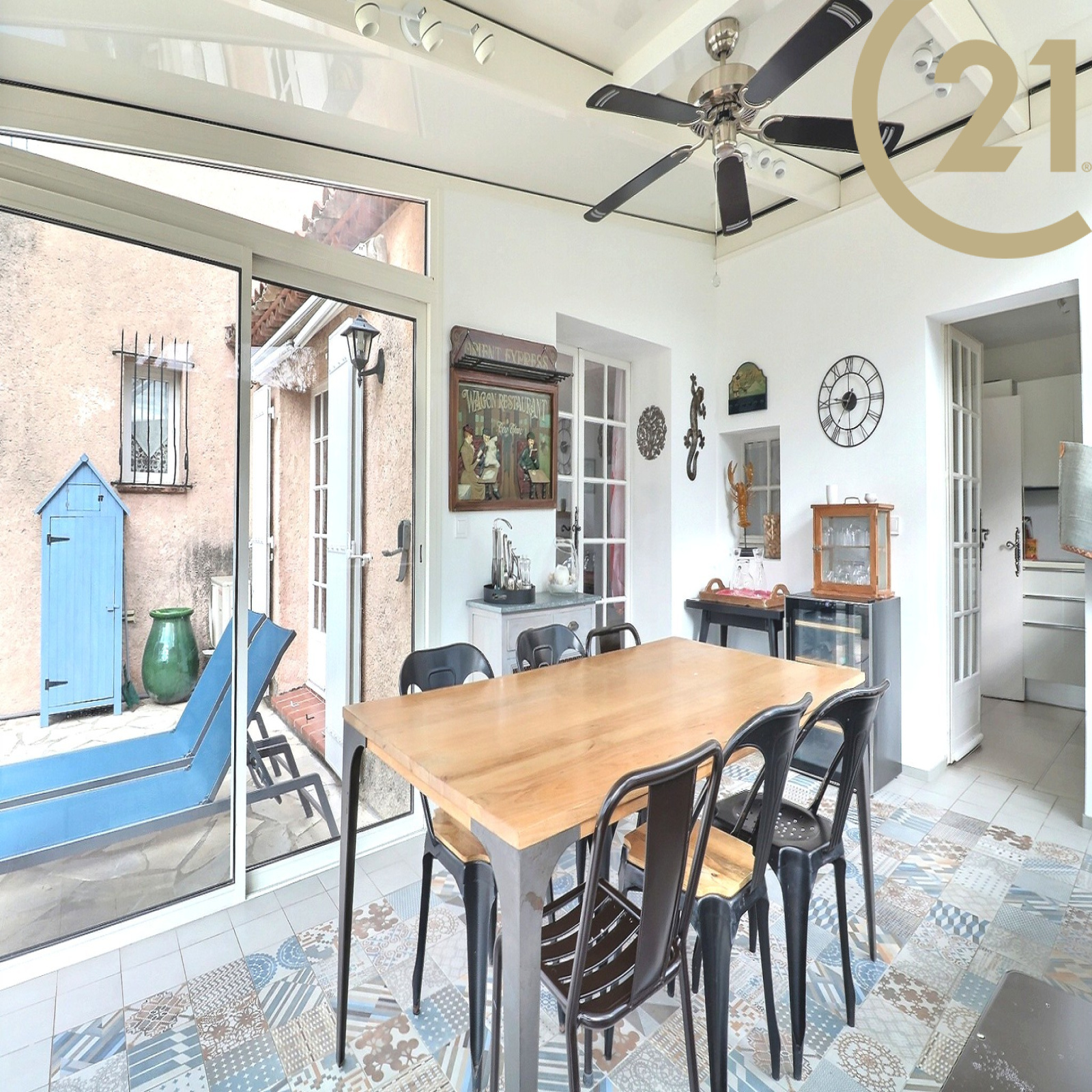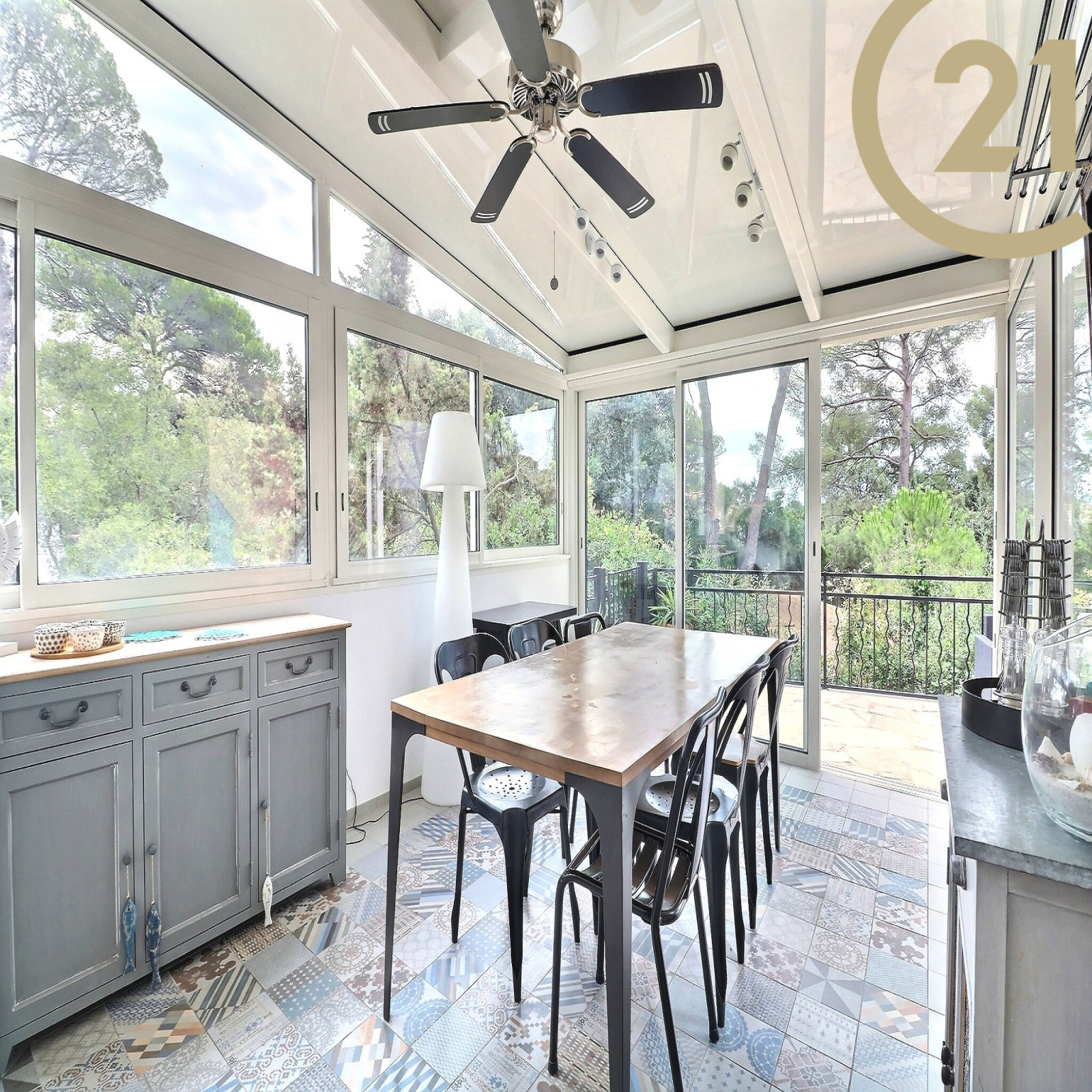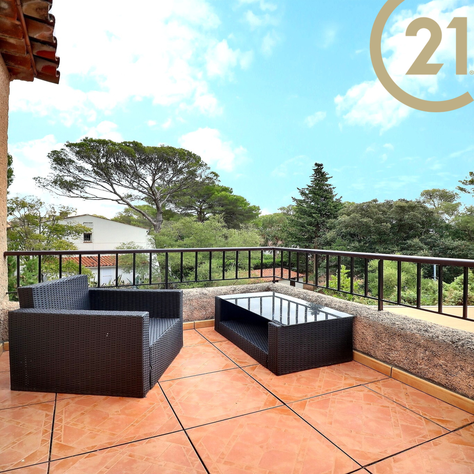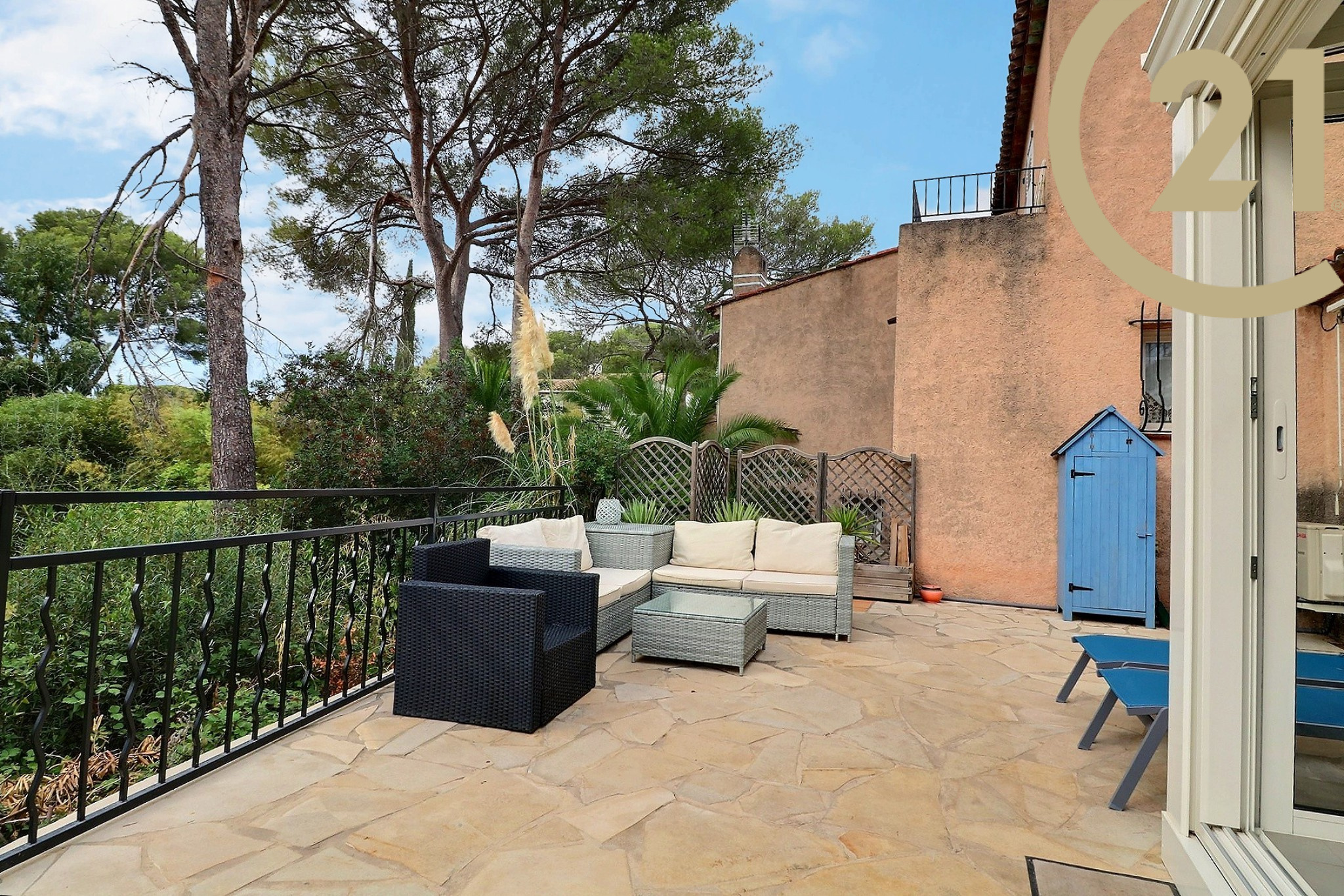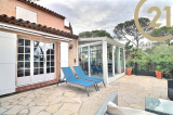 EXCLUSIVITE SAINT-RAPHAEL LES PLAINES - Jolie maison 4 pièces de 88 m² située dans le quartier prisé des Plaines, à quelques minutes à pied seulement de la mer et des commerces. Elle offre un séjour avec belle hauteur sous plafond, une cuisine séparée entièrement équipée, une chambre de plain pied avec placard et salle d'eau attenante, des WC séparés et une grande véranda récente entièrement aménagée. L'étage se compose d'une chambre offrant également une belle hauteur sous plafond avec terrasse tropézienne privative, une troisième chambre avec balcon, et une jolie salle d'eau avec WC et fenêtre. La pièce de vie donne sur une vaste terrasse équipée d'un store bénéficiant d'une jolie vue dégagée sur la verdure. Cette maison jouit d'un espace privatif de 106 m². Climatisation réversible et volets aluminium. Vous apprécierez le charme de ce bien, son environnement calme et sa situation géographique très recherchée. 10 minutes à pied de la mer. Copropriété de 3 lots.