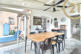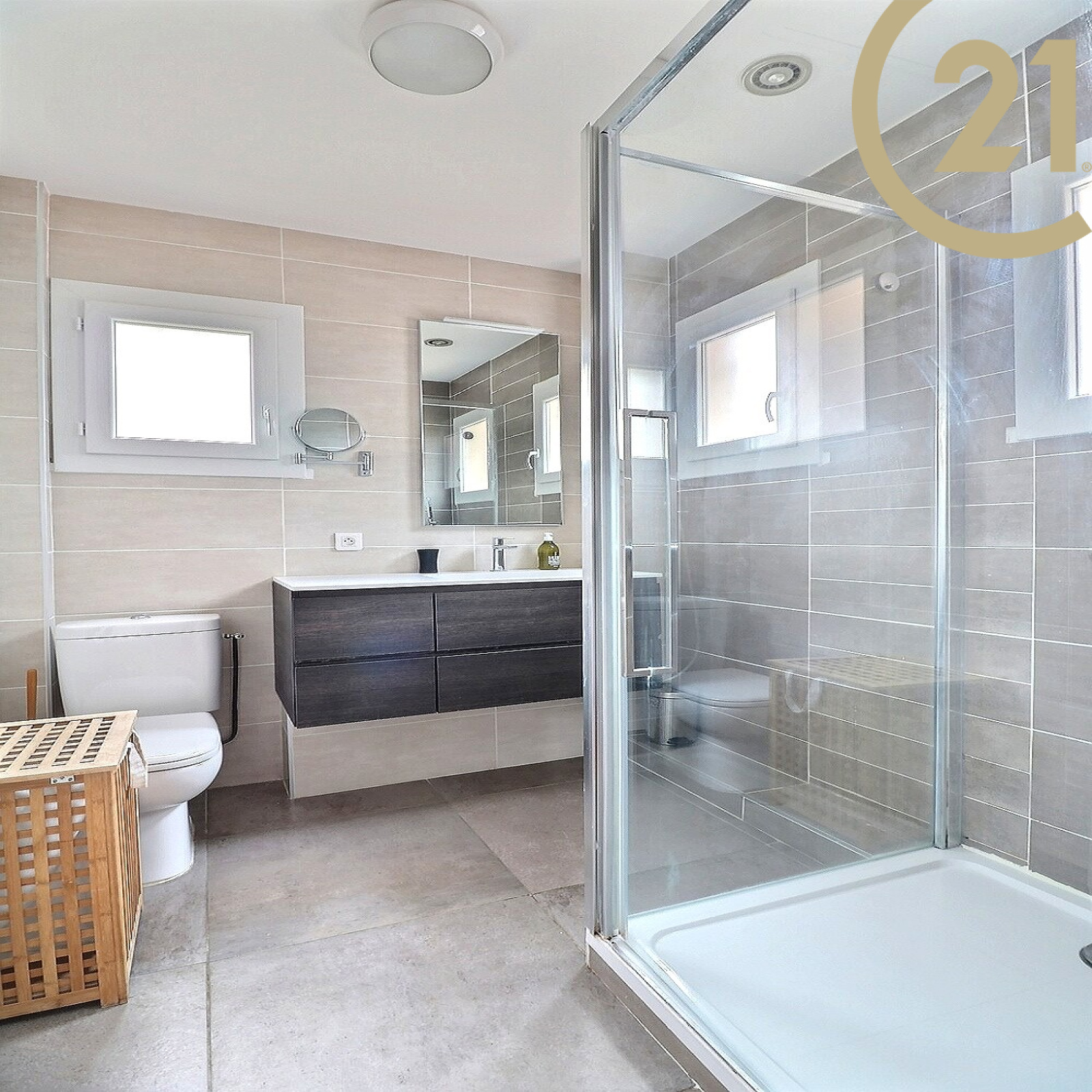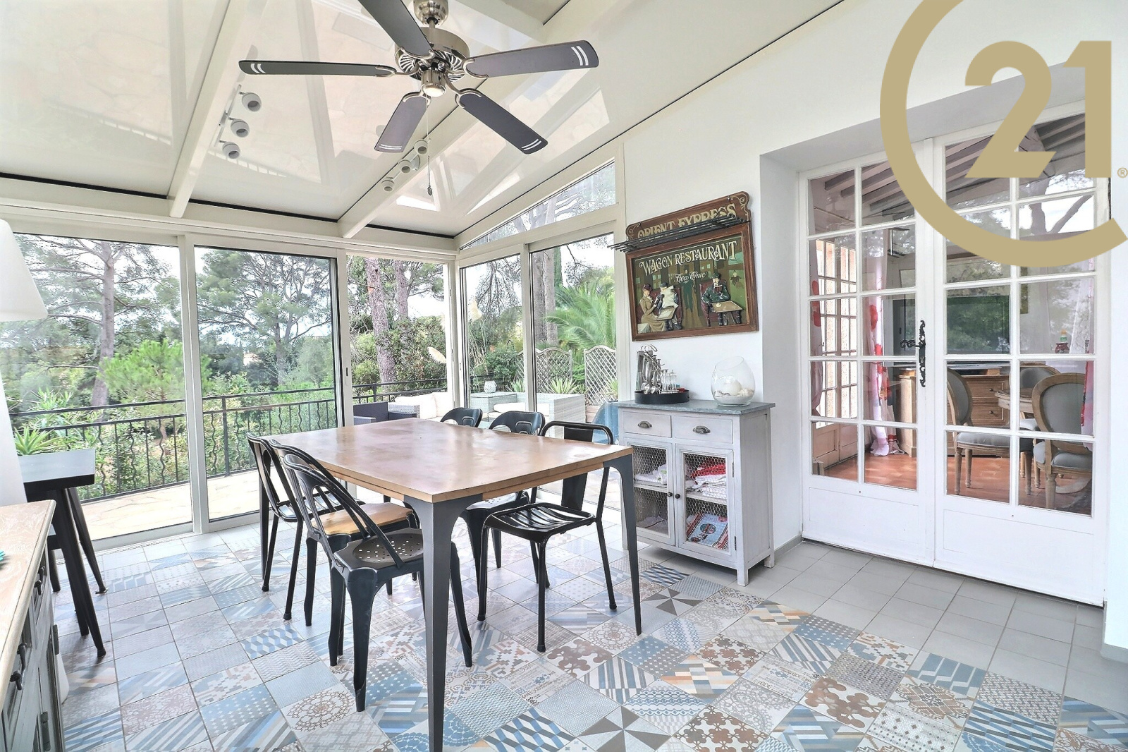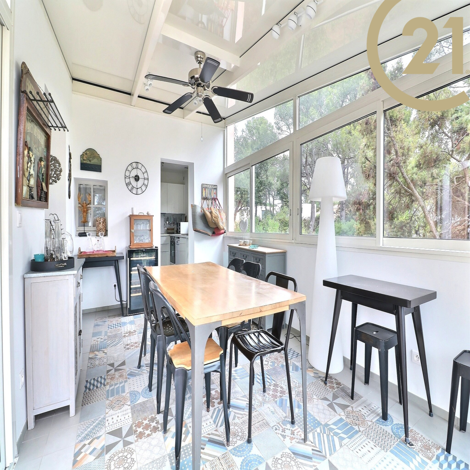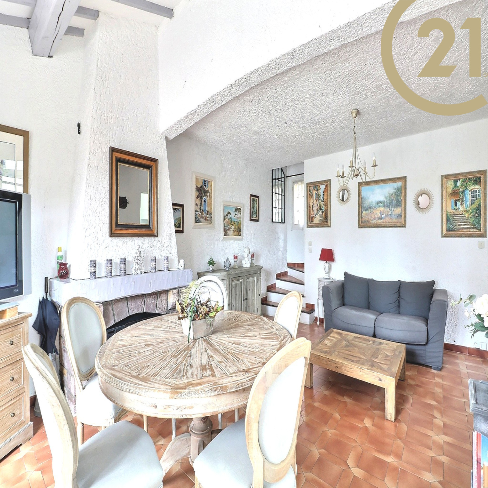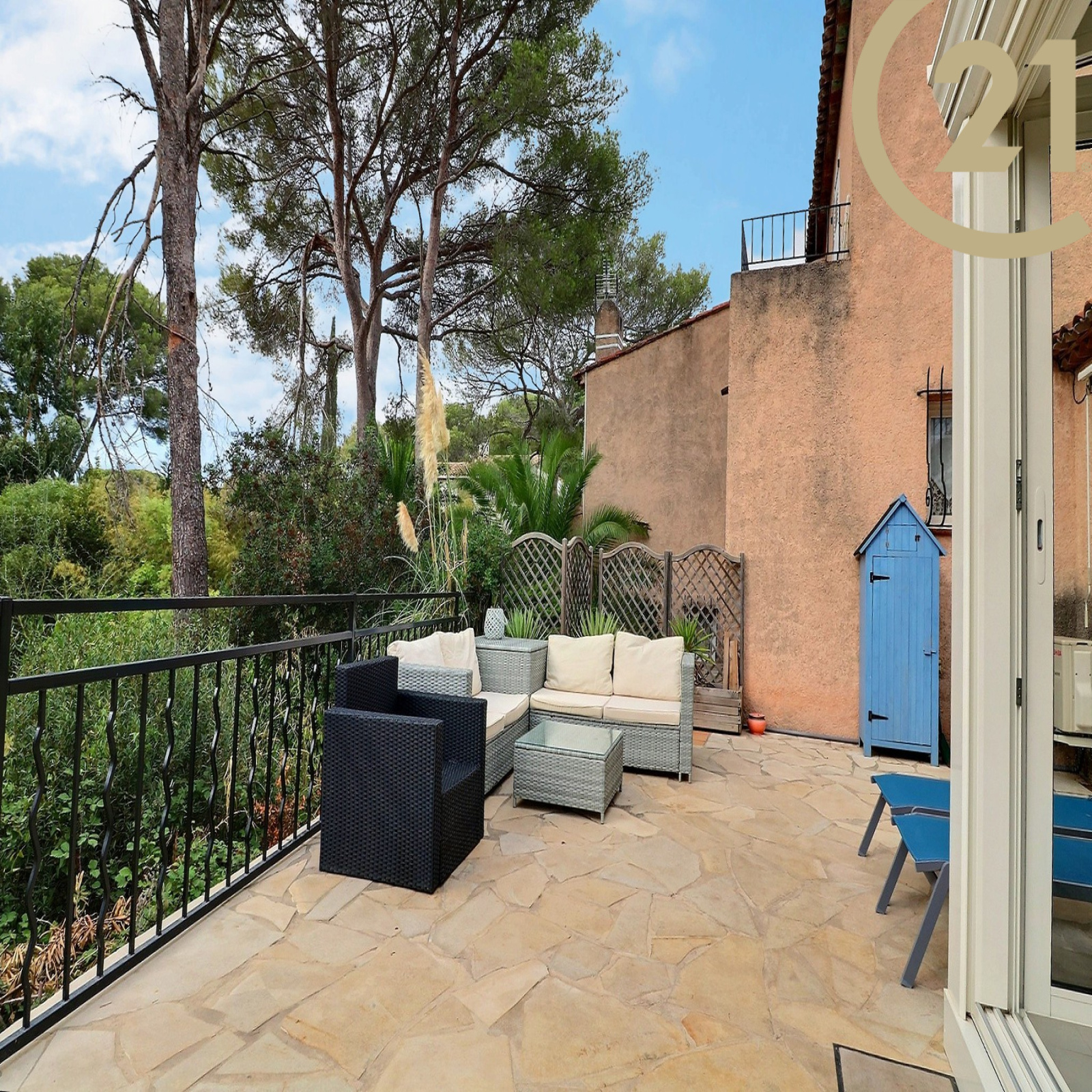 EXCLUSIVITE SAINT-RAPHAEL LES PLAINES - Jolie maison 4 pièces de 88 m² située dans le quartier prisé des Plaines, à quelques minutes à pied seulement de la mer et des commerces. Elle offre un séjour avec belle hauteur sous plafond, une cuisine séparée entièrement équipée, une chambre de plain pied avec placard et salle d'eau attenante, des WC séparés et une grande véranda récente entièrement aménagée. L'étage se compose d'une chambre offrant également une belle hauteur sous plafond avec terrasse tropézienne privative, une troisième chambre avec balcon, et une jolie salle d'eau avec WC et fenêtre. La pièce de vie donne sur une vaste terrasse équipée d'un store bénéficiant d'une jolie vue dégagée sur la verdure. Cette maison jouit d'un espace privatif de 106 m². Climatisation réversible et volets aluminium. Vous apprécierez le charme de ce bien, son environnement calme et sa situation géographique très recherchée. 10 minutes à pied de la mer. Copropriété de 3 lots.