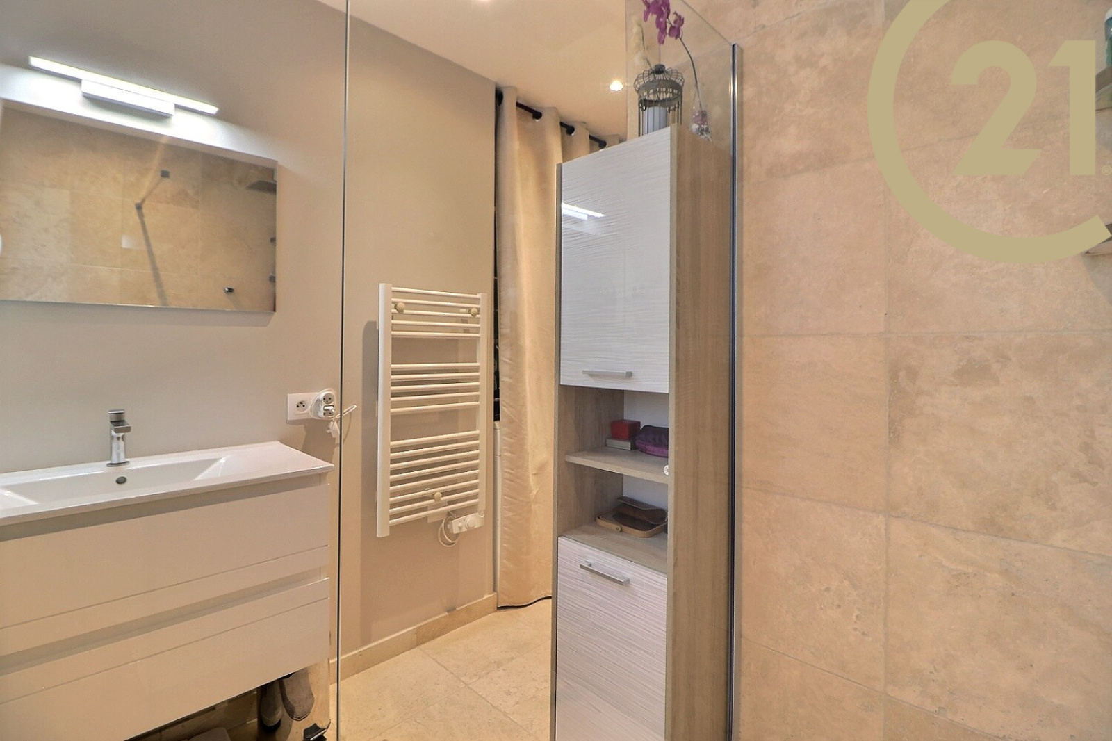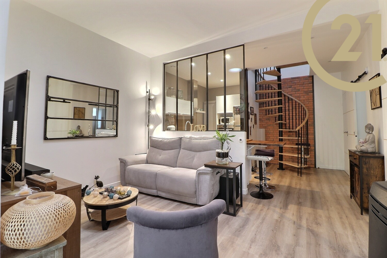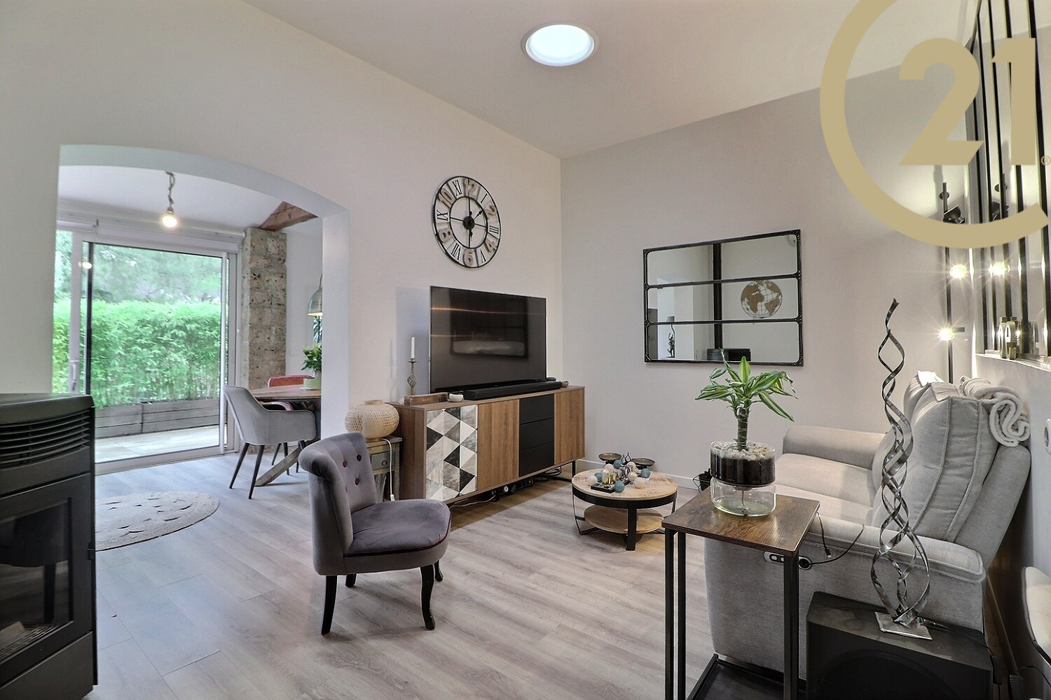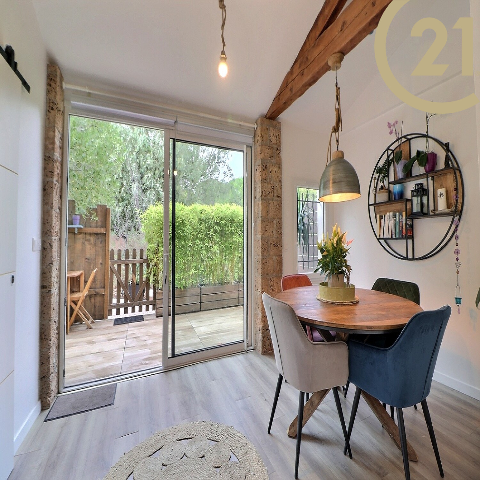 Elle se compose au rez-de-chaussée d’un lumineux espace séjour donnant sur une terrasse d’environ 20m², d’un salon, d’une cuisine équipée, d’une chambre, d’un bureau, d’une salle d’eau et d’un WC.