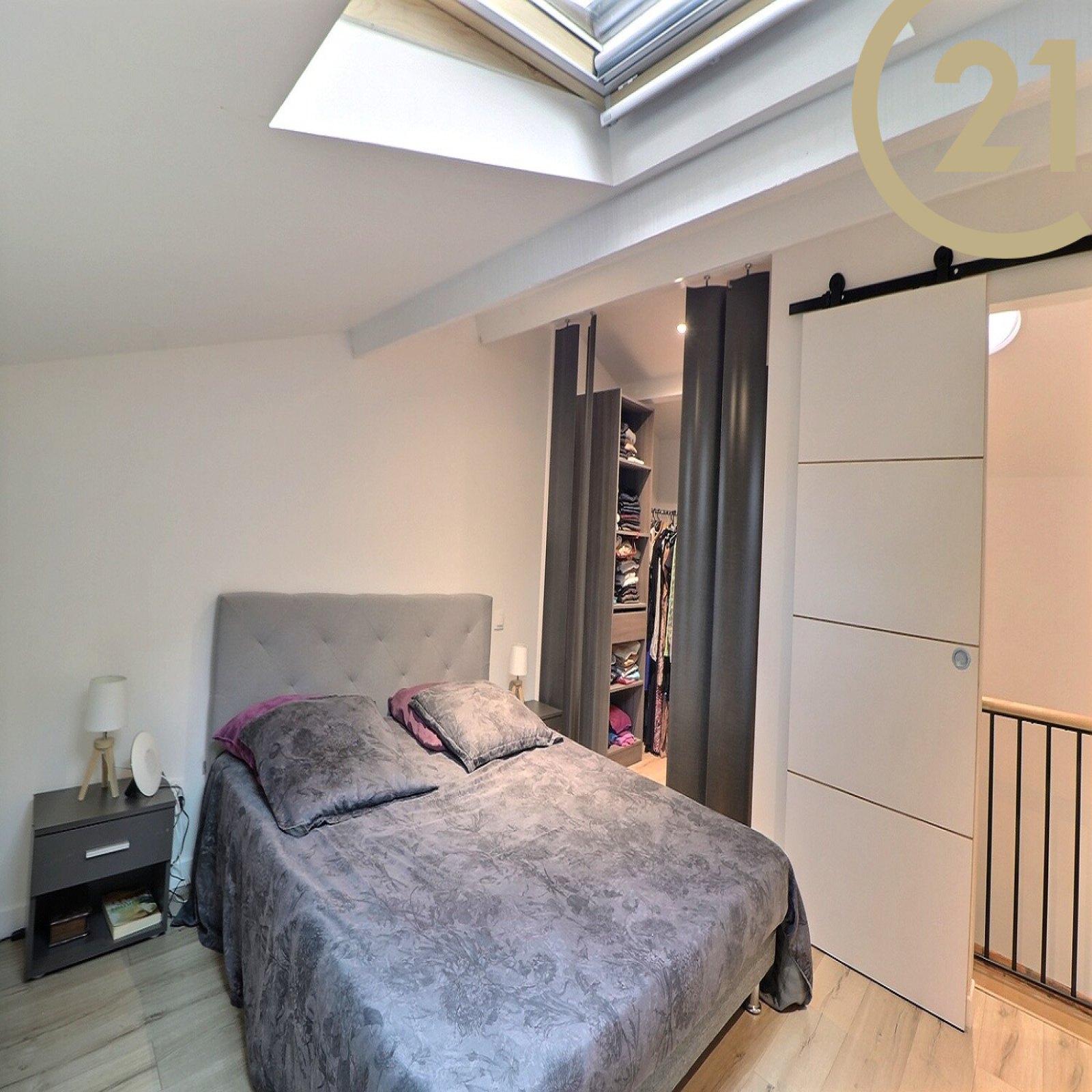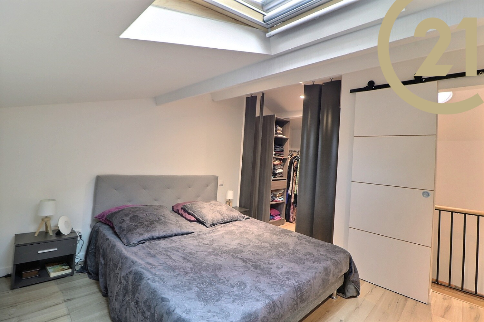 Au 1er étage une chambre avec placards et un dressing.