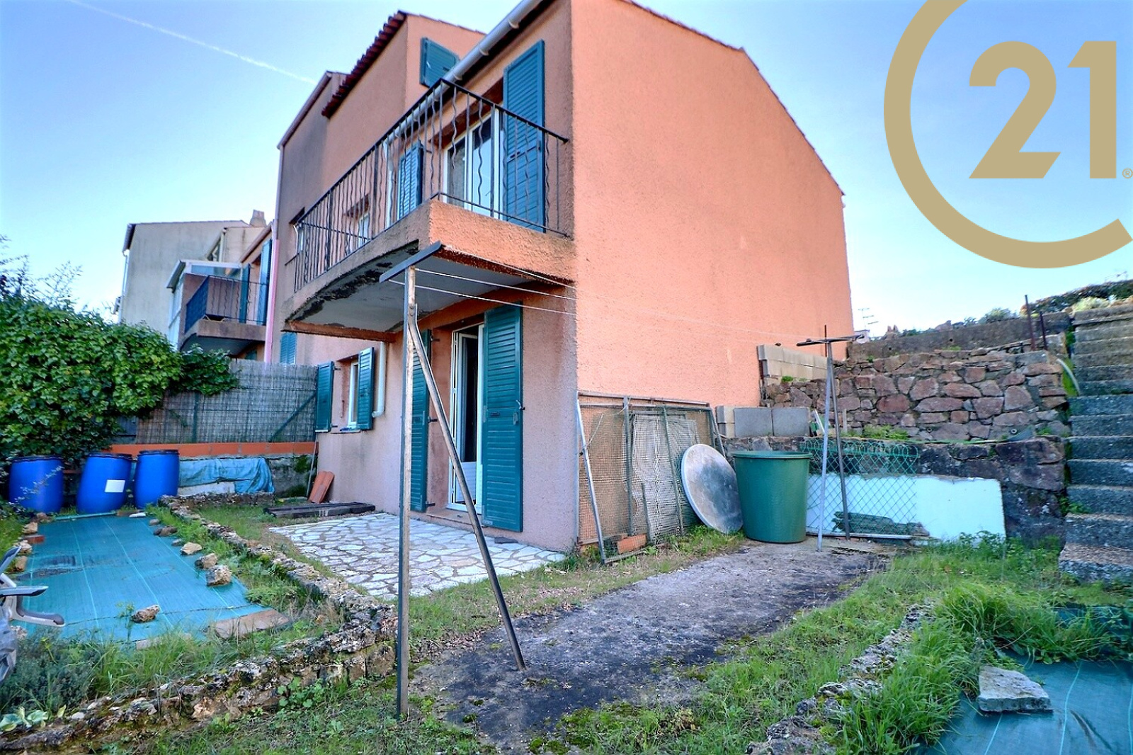 VENTE EN EXCLUSIVITE - SAINT-RAPHAËL - située sur les hauteurs de Saint-Raphaël, au calme et à proximité immédiate du centre-ville, des commerces et des écoles, maison 4 pièces à rafraichir sur 3 niveaux. Elle se compose au niveau principal d'une pièce de vie avec balcon, une cuisine indépendante avec cellier ainsi qu'un jardin avec cuisine d'été. L'étage lui comprend une chambre avec WC. La partie basse vous offrira deux chambres dont une avec accès à un second jardin, une salle d'eau et un wc indépendant. Avec des travaux d'embellissement, cette maison saura accueillir sa prochaine famille ! Un garage attenant complète ce bien.