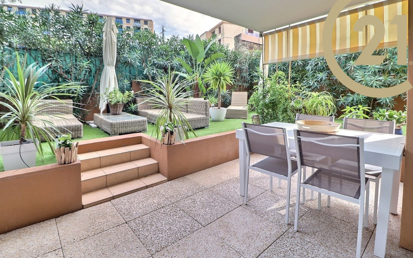 VENTE - SAINT-RAPHAËL - CENTRE-VILLE - A deux pas du centre-ville dans une petite résidence sécurisée de 12 appartements au calme, en impasse, découvrez cet appartement 3 pièces de 75m² qui bénéficie d'un beau jardin de 100m².