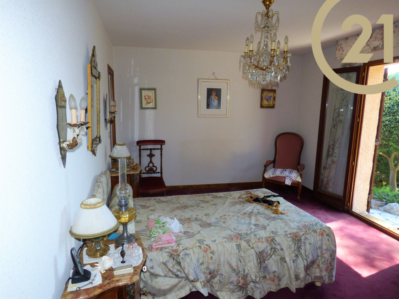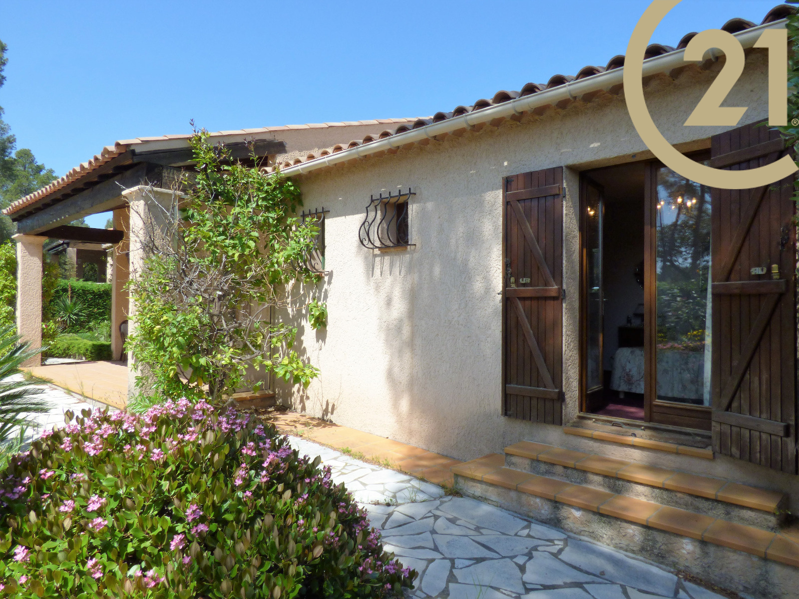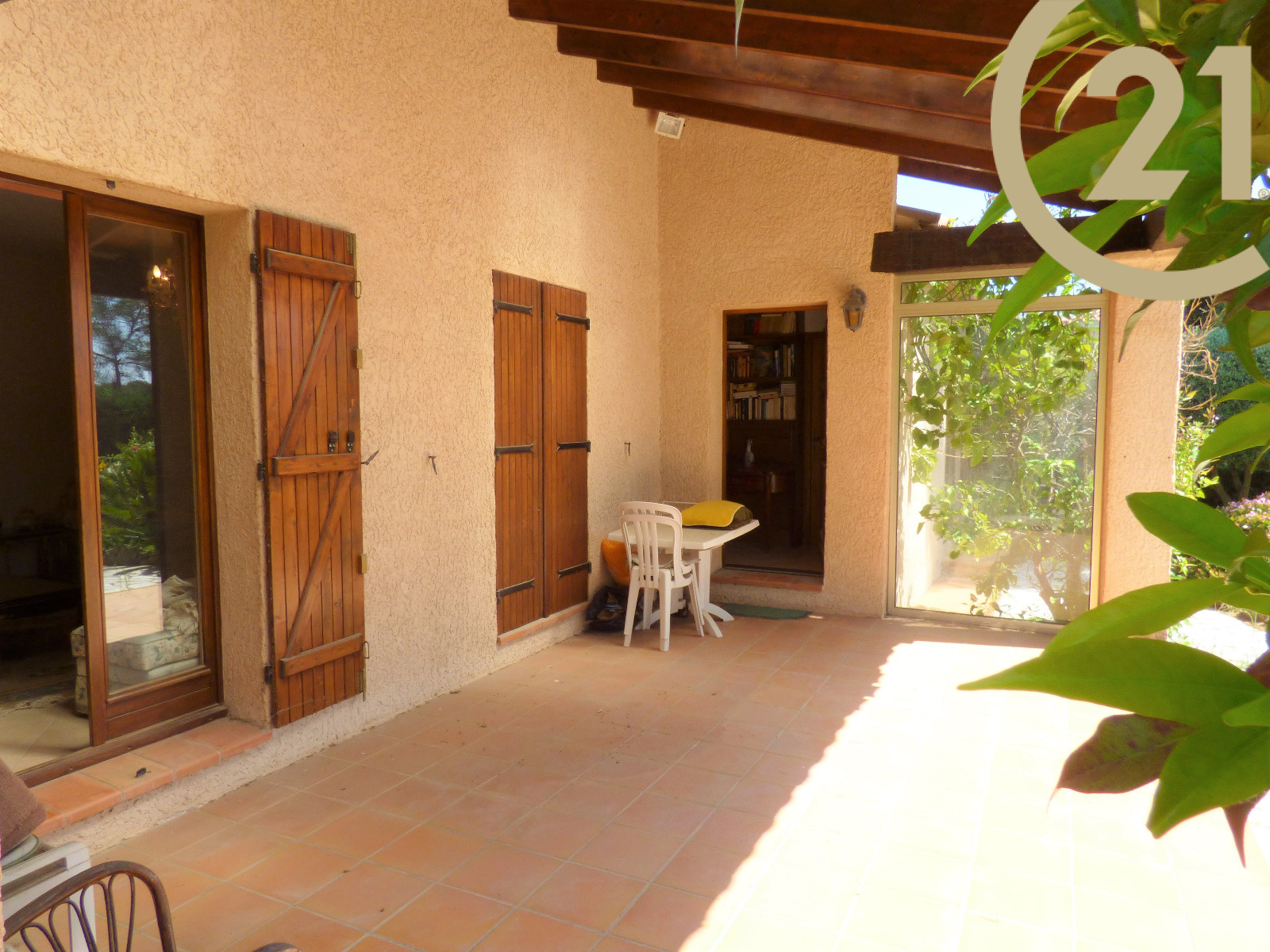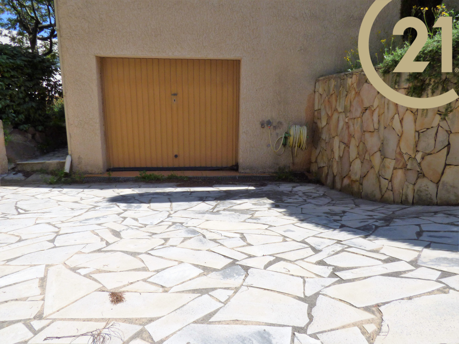 SAINT-RAPHAEL, dans le quartier très recherché de Boulouris, parfaitement au calme, à moins de 700 mètres de la plage/mer, villa indépendante de plain-pied de type 4/5 pièces comprenant une entrée, un wc indépendant, une cuisine indépendante (avec possibilité d'ouvrir sur le séjour), un double séjour (avec possibilité de créer une troisième chambre), 2 chambres dont une avec salle de bains / wc et l'autre avec salle de douche. Un sous-sol total de 50 m² avec une pièce avec fenêtres de 24,45 m² aménageable en chambre ou studio et un grand garage de 21,16 m². Grande terrasse de 21 m² couverte (possibilité de l'intégrer au séjour afin de faire un agrandissement). Le tout sur un beau terrain paysagé et ensoleillé de 700 m² environ plat et piscinable. Bonne exposition.