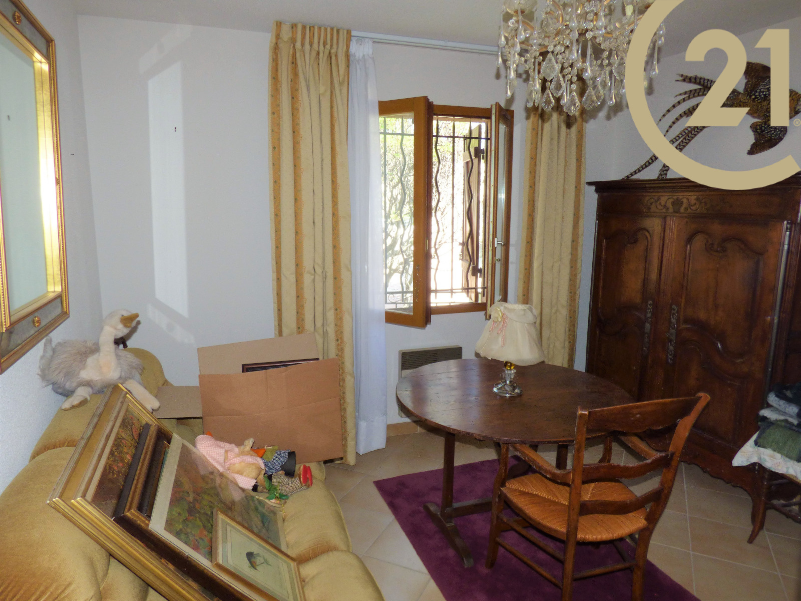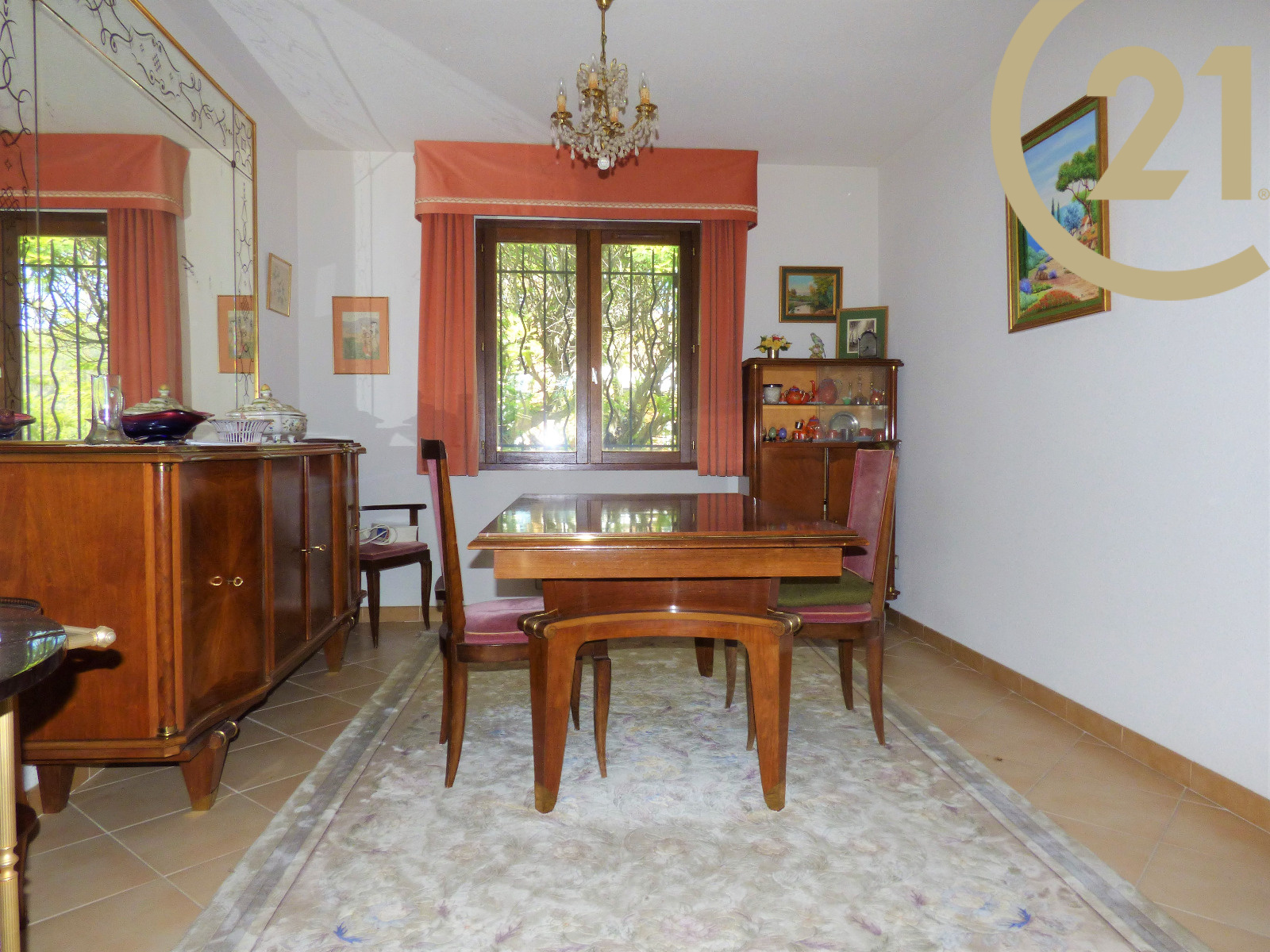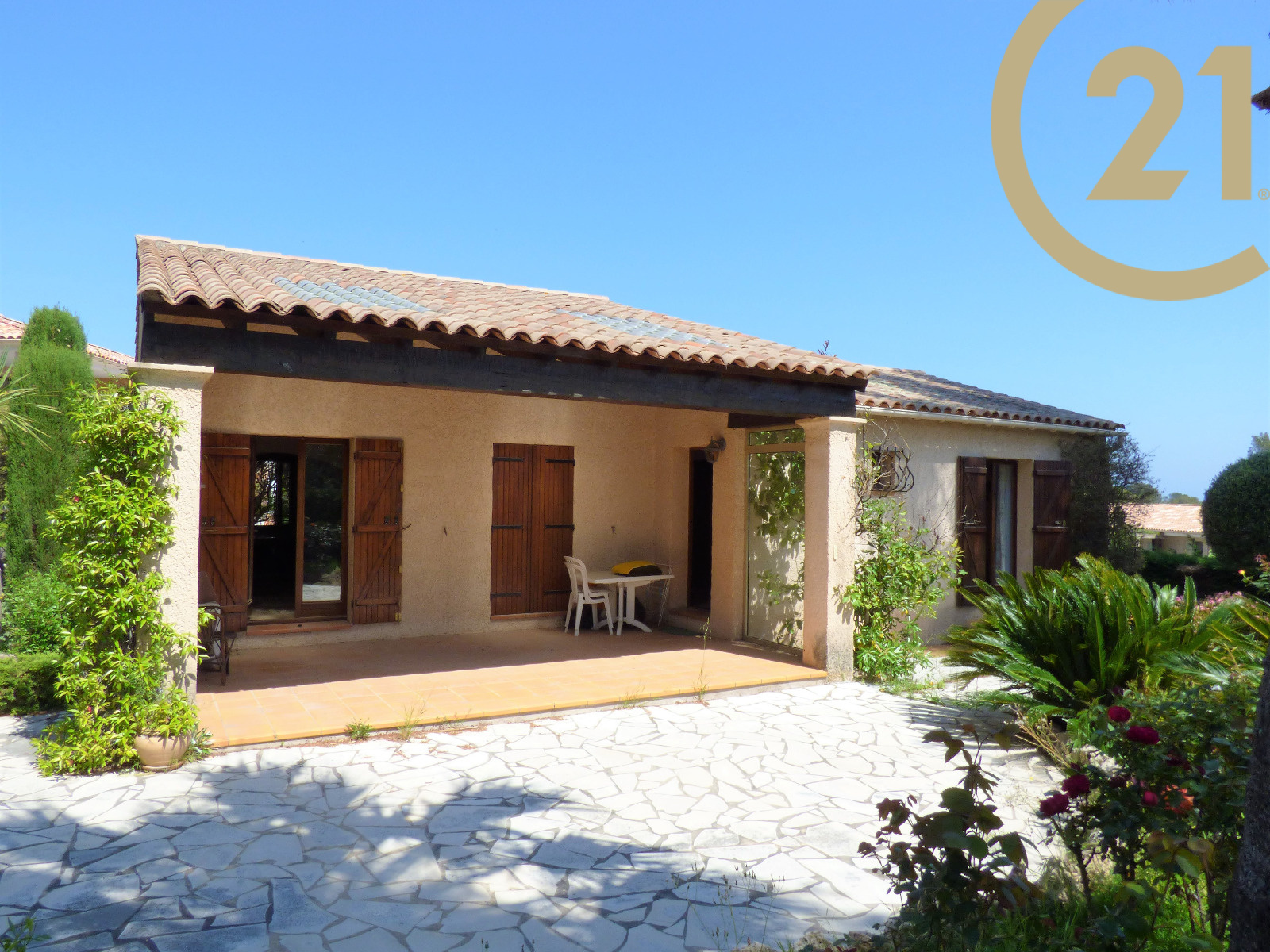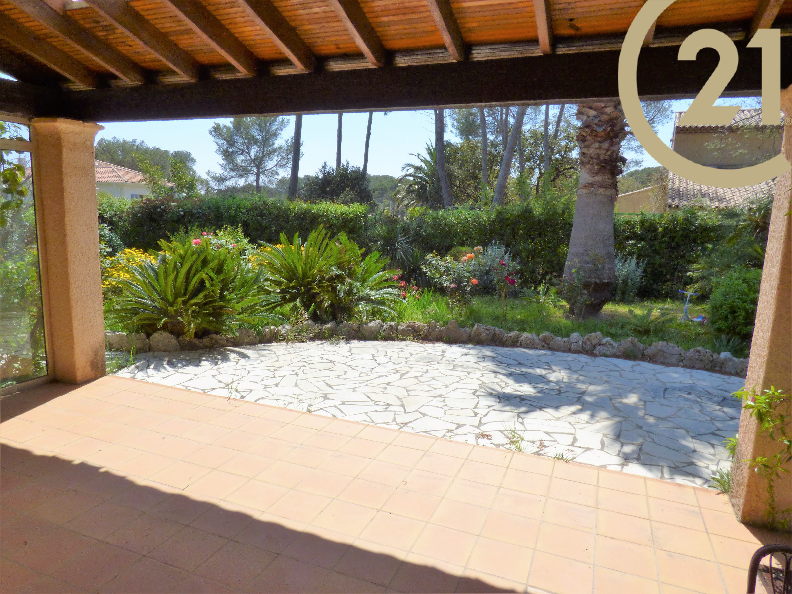 SAINT-RAPHAEL, dans le quartier très recherché de Boulouris, parfaitement au calme, à moins de 700 mètres de la plage/mer, villa indépendante de plain-pied de type 4/5 pièces comprenant une entrée, un wc indépendant, une cuisine indépendante (avec possibilité d'ouvrir sur le séjour), un double séjour (avec possibilité de créer une troisième chambre), 2 chambres dont une avec salle de bains / wc et l'autre avec salle de douche. Un sous-sol total de 50 m² avec une pièce avec fenêtres de 24,45 m² aménageable en chambre ou studio et un grand garage de 21,16 m². Grande terrasse de 21 m² couverte (possibilité de l'intégrer au séjour afin de faire un agrandissement). Le tout sur un beau terrain paysagé et ensoleillé de 700 m² environ plat et piscinable. Bonne exposition.