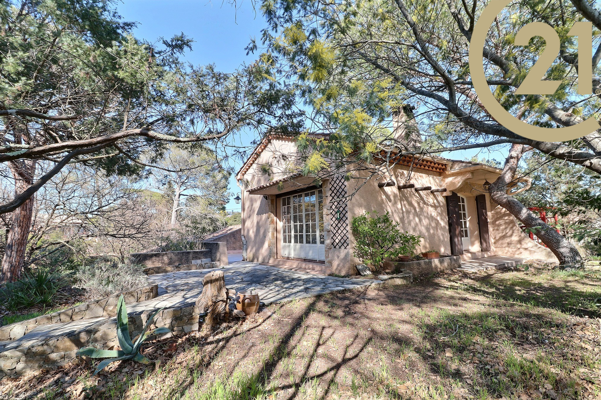 EXCLUSIVITE SAINT-RAPHAEL VALESCURE - Villa de construction traditionnelle édifiée sur un beau terrain piscinable de 1895 m² au coeur d'un quartier calme à Valescure. Cette spacieuse villa 4 pièces de 145 m² habitables offre à l'étage principal : un spacieux séjour avec cheminée bénéficiant d'une triple exposition et de plusieurs accès à l'extérieur, une cuisine indépendante avec balcon, une chambre, une salle de bains et des WC séparés. L'étage inférieur offre une cuisine, deux chambres, une salle de bains, une salle d'eau avec WC et des toilettes séparées. Un grand garage de près de 23 m² directement relié à l'habitation complète ce niveau. Cette villa saura vous séduire par la qualité de son environnement arboré et son fort potentiel.Centre-ville et tous commerces accessibles en 5 minutes en voiture