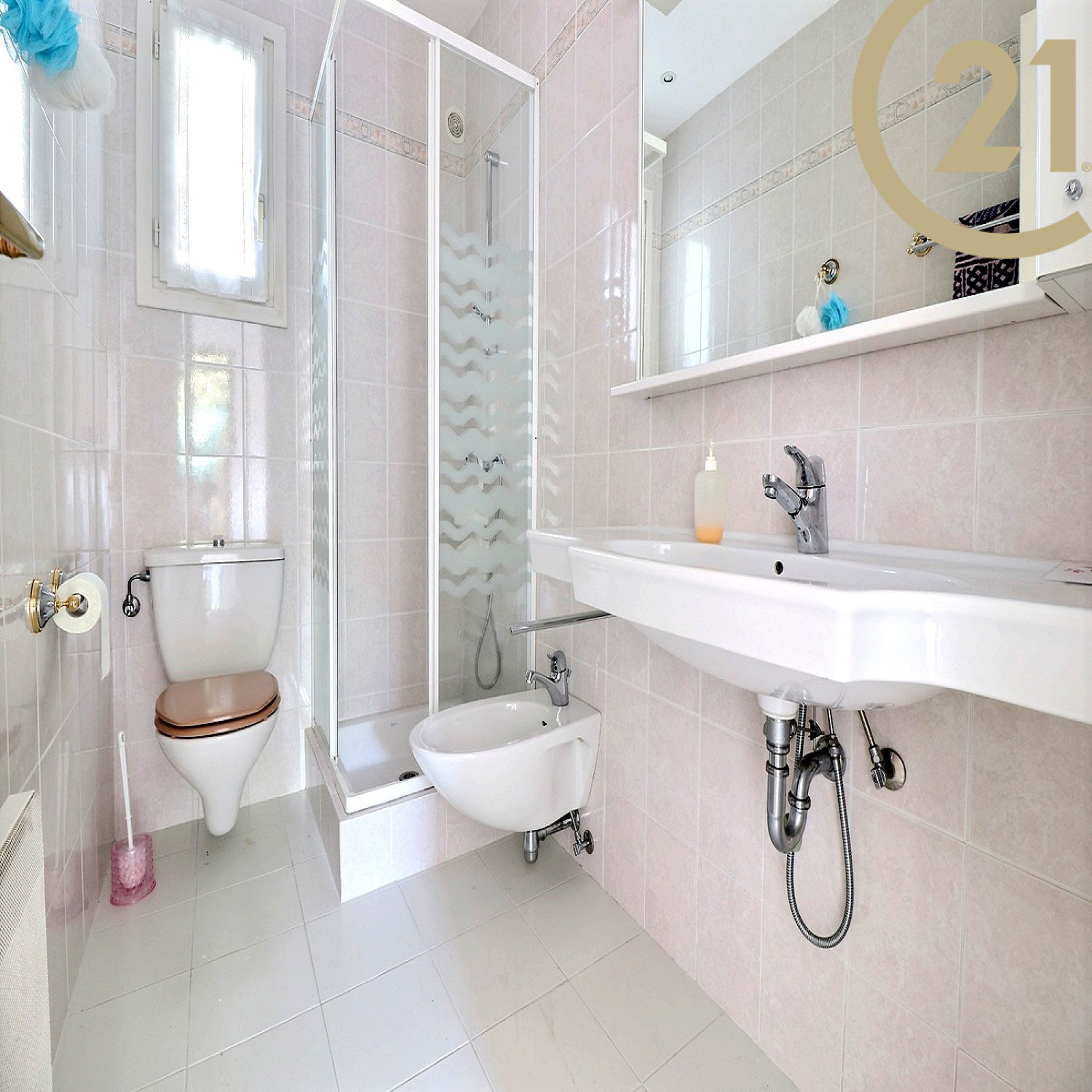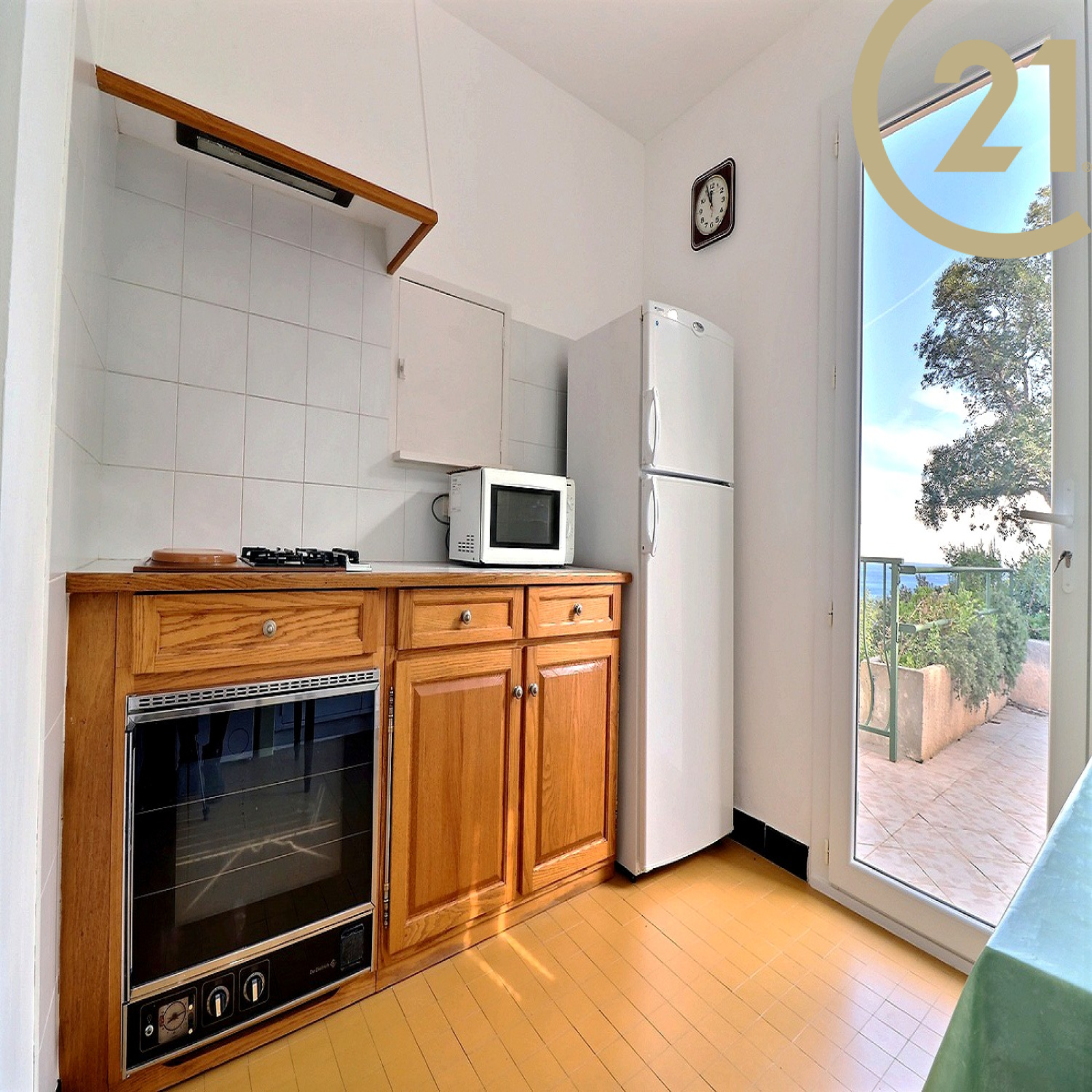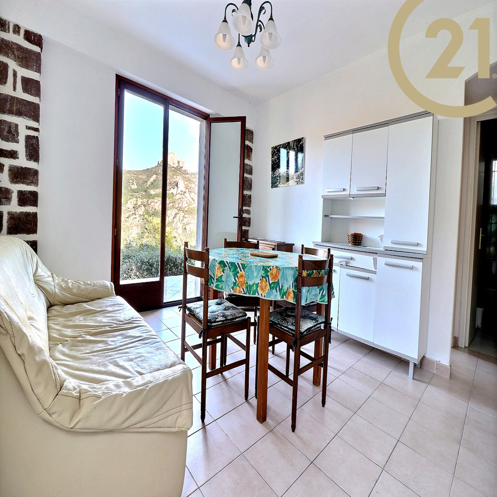 SAINT-RAPHAËL ANTHEOR, Avec une vue mer et vue sur le massif de l'Esterel, dans un domaine sécurisé, cette villa bénéficie de deux appartements 2 pièces et d'un jardin de 1759m². En rez de chaussée, l'appartement se compose d'une entrée, d'une cuisine indépendante, d'un séjour, d'une chambre avec placard donnant sur une grande terrasse, d'un bureau, d'une salle d'eau et d'un wc.