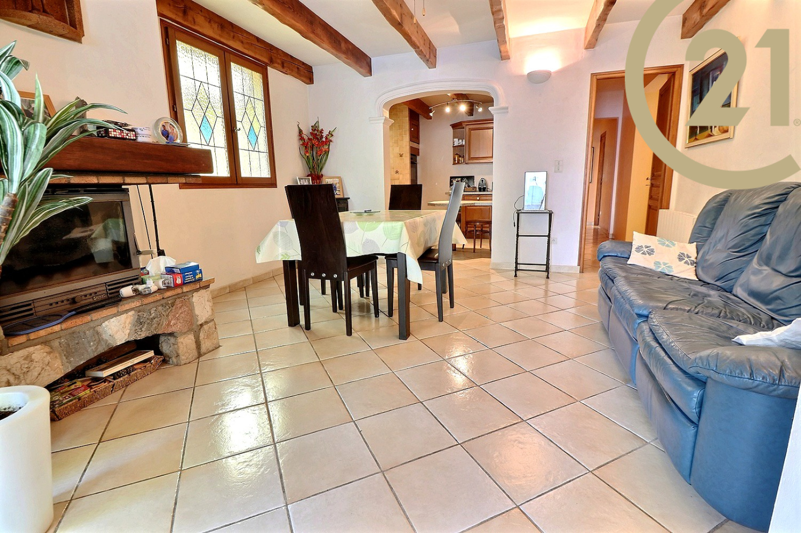 Elle se compose de plain-pied : d'une entrée, d'un séjour avec cheminée, d'une cuisine américaine équipée, d'un dégagement, d'une chambre, d'une salle de douche et d'un wc indépendant.