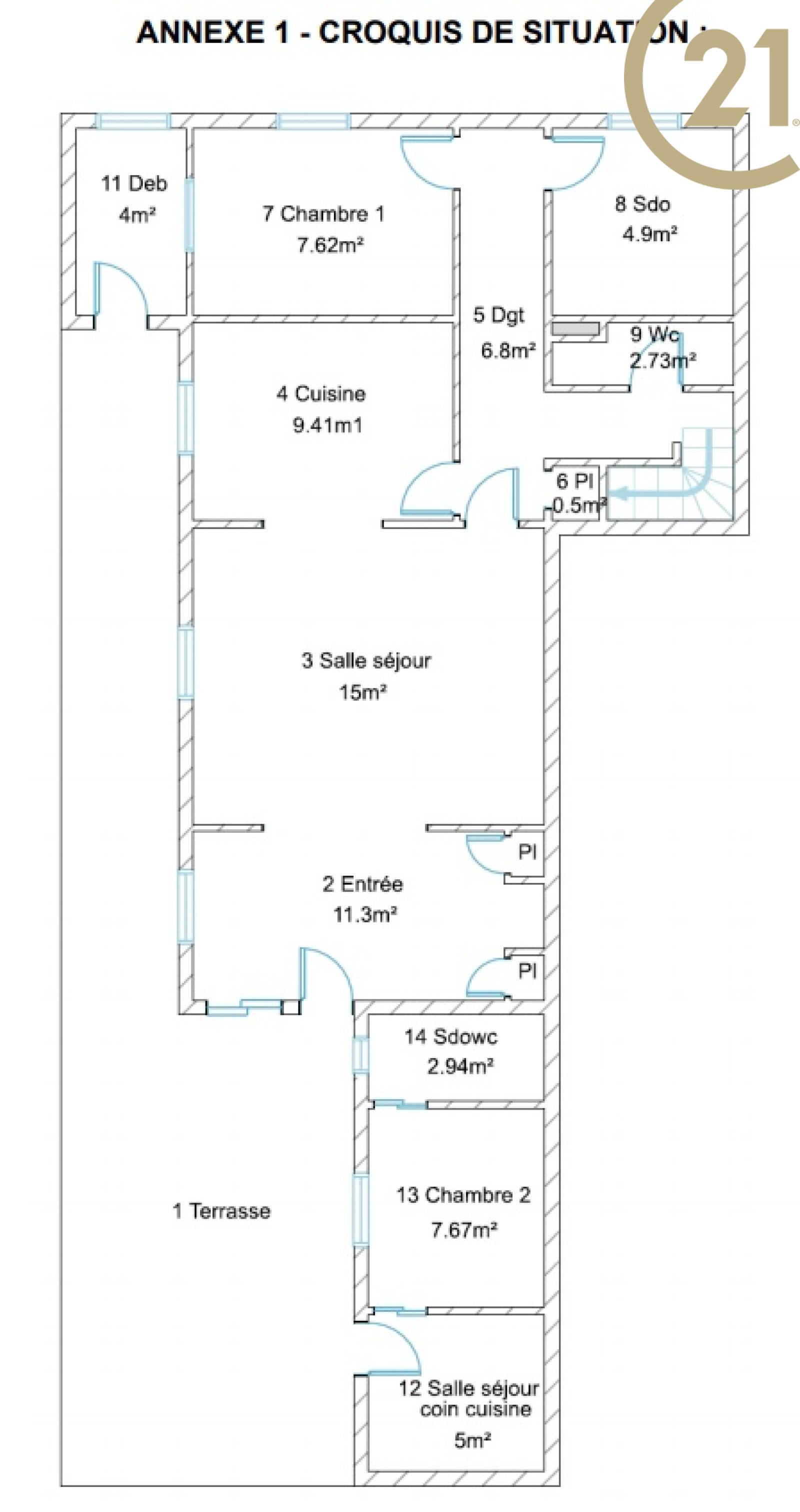 Vous pourrez profiter de sa grande terrasse de 34 m² exposition Sud/est. Par la terrasse vous accèderez également à un studio avec salle d'eau/wc.