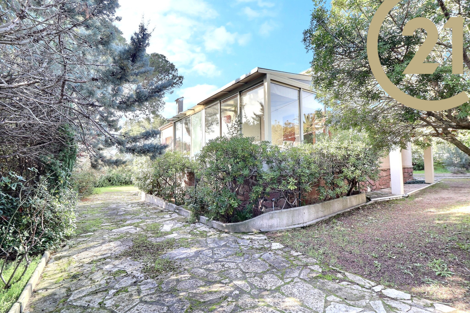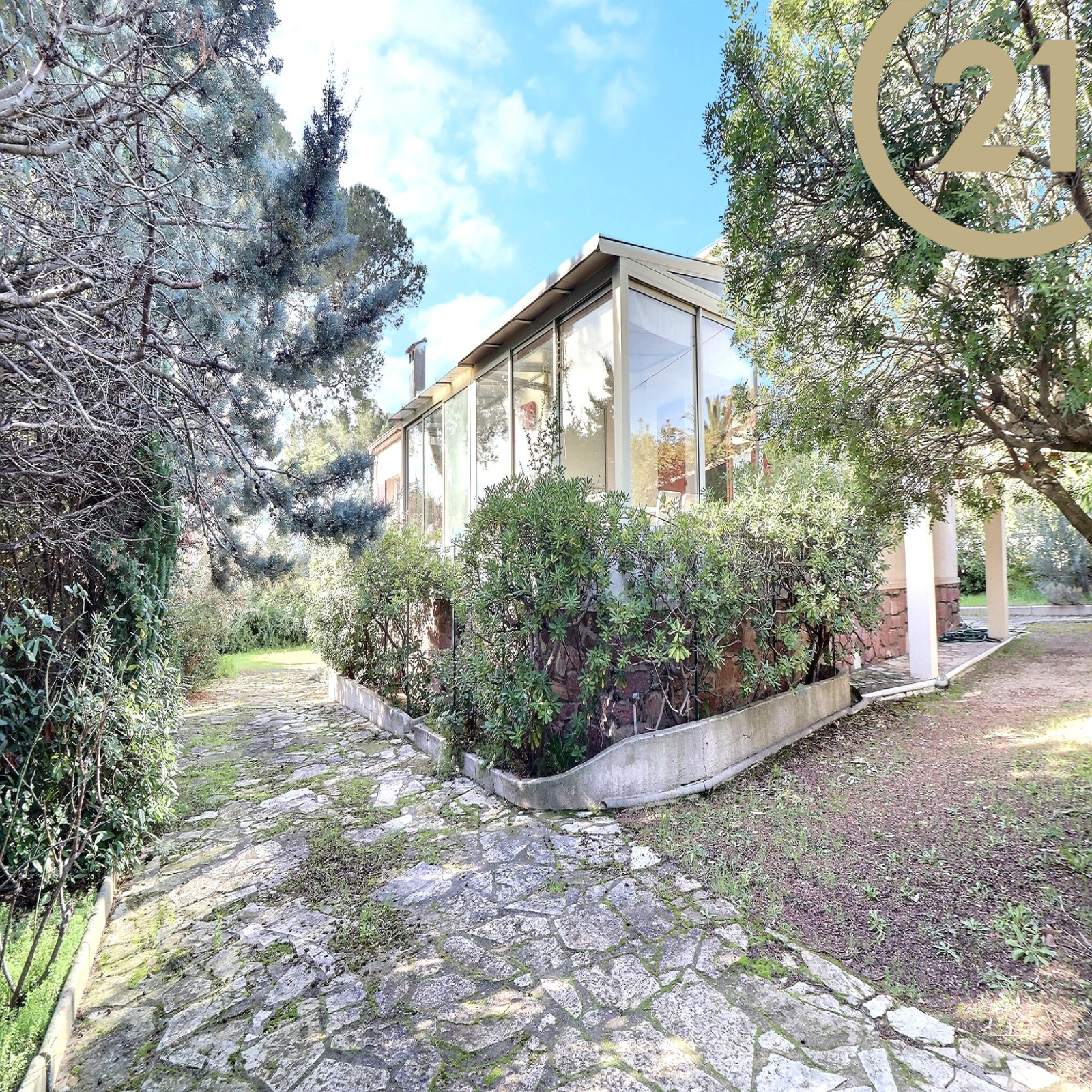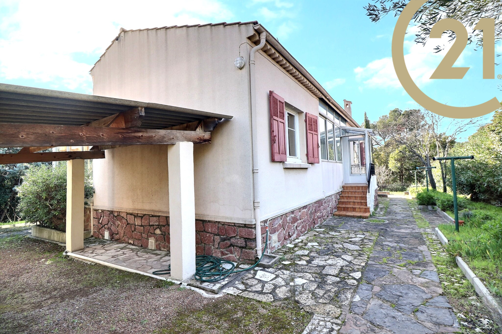 EXCLUSIVITE SAINT-RAPHAEL - Villa individuelle 5 pièces édifiée sur un terrain plat de 691 m² à proximité du quartier prisé des Plaines et de la Péguière,à quelques minutes à pied seulement de la mer et des commerces. Cette villa de plain pied offre un hall d'entrée, une loggia, un espace séjour/salle à manger de 38 m² avec cheminée ouverts sur une spacieuse terrasse de 20 m² avec véranda exposée Sud, une cuisine séparée et un coin nuit indépendant offrant 3 chambres, une salle d'eau et des WC séparés. Un garage, un abri voiture et un espace indépendant aménageable complètent ce bien. Vous apprécierez le cadre de verdure, la situation géographique très recherchée ainsi que l'espace de plain pied.