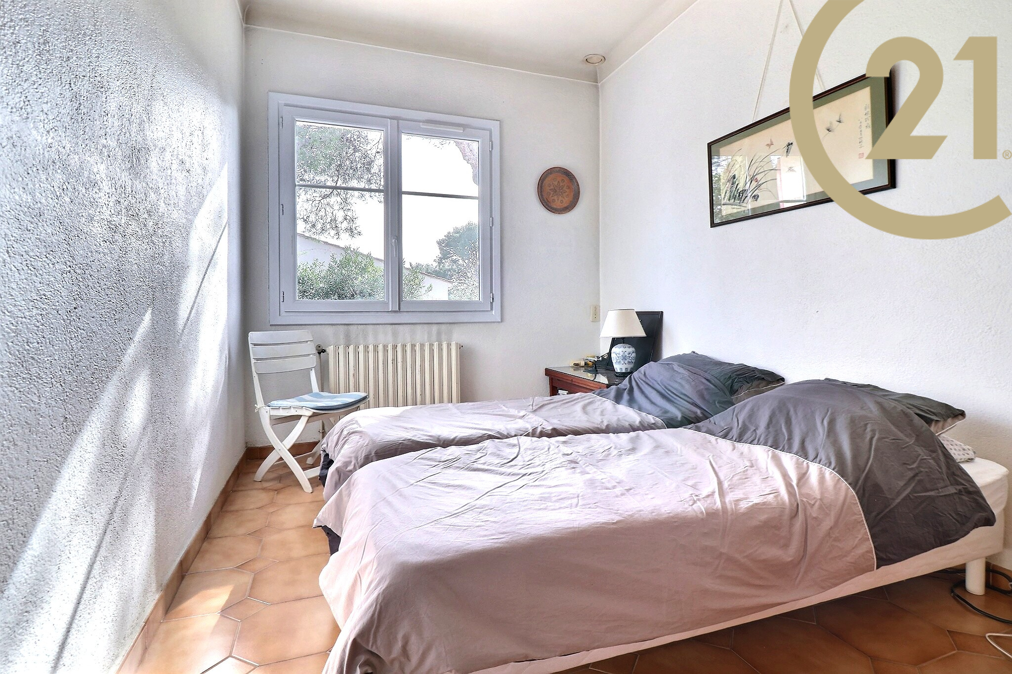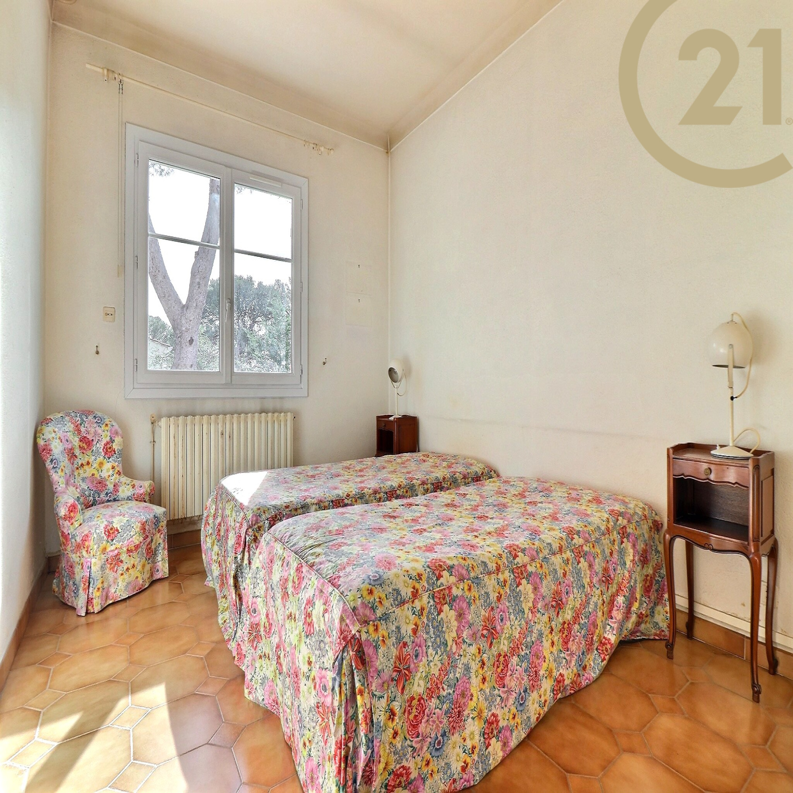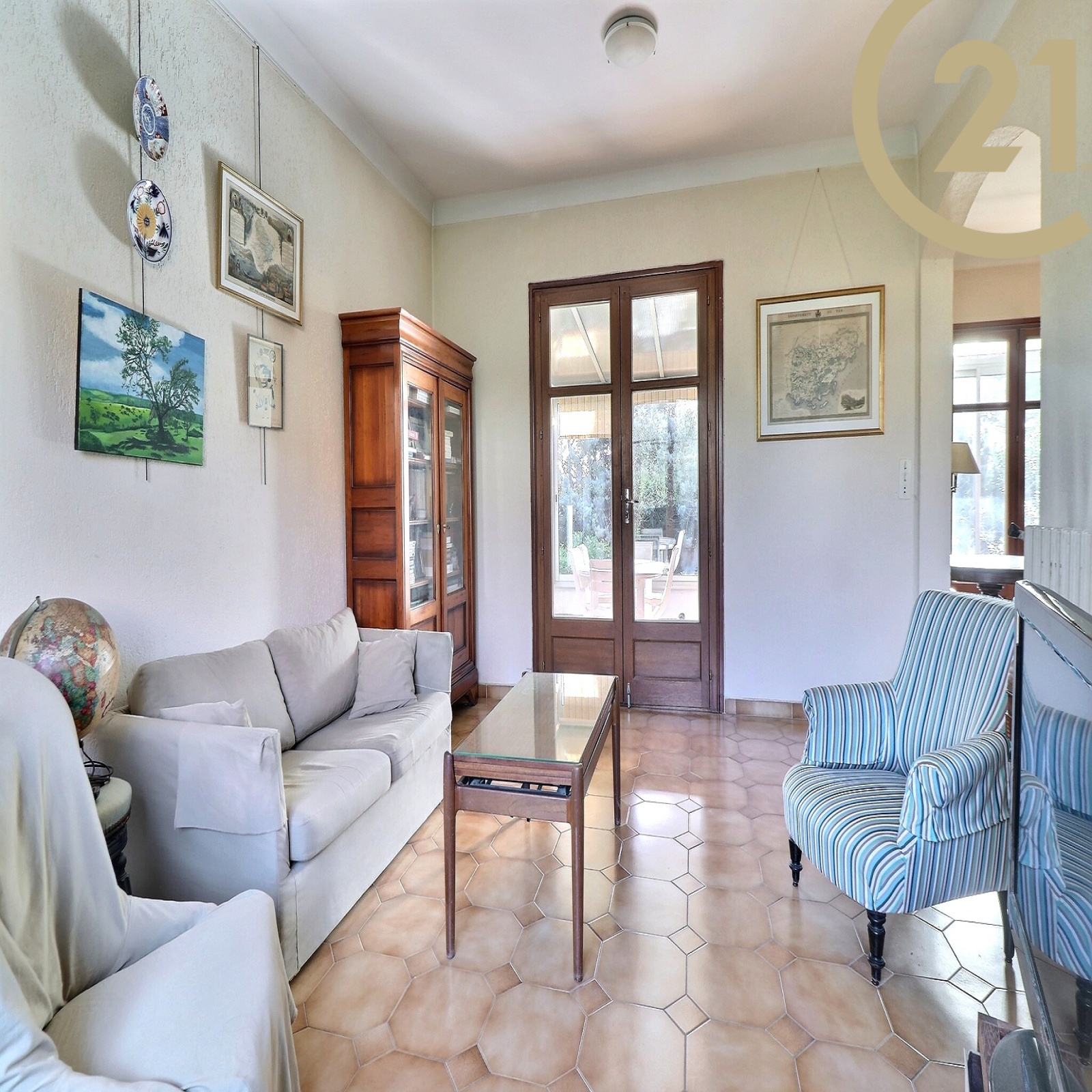 EXCLUSIVITE SAINT-RAPHAEL - Villa individuelle 5 pièces édifiée sur un terrain plat de 691 m² à proximité du quartier prisé des Plaines et de la Péguière,à quelques minutes à pied seulement de la mer et des commerces. Cette villa de plain pied offre un hall d'entrée, une loggia, un espace séjour/salle à manger de 38 m² avec cheminée ouverts sur une spacieuse terrasse de 20 m² avec véranda exposée Sud, une cuisine séparée et un coin nuit indépendant offrant 3 chambres, une salle d'eau et des WC séparés. Un garage, un abri voiture et un espace indépendant aménageable complètent ce bien. Vous apprécierez le cadre de verdure, la situation géographique très recherchée ainsi que l'espace de plain pied.