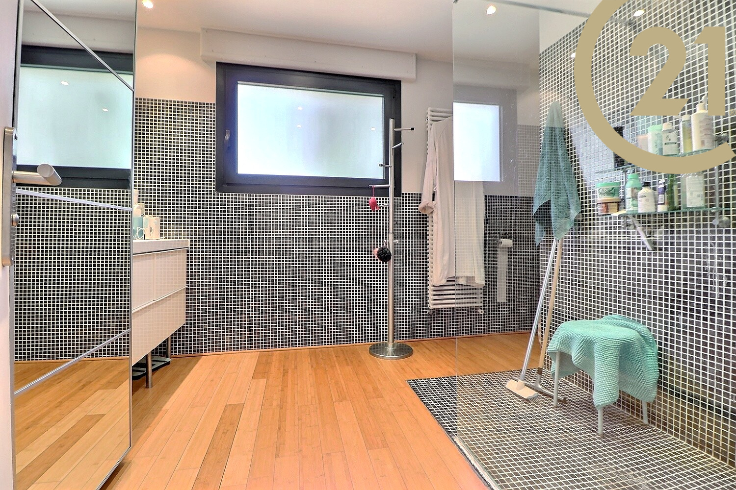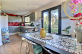 La partie basse se compose elle : de deux chambres dont une avec salle d'eau, d'une salle de jeu et d'un WC indépendant. La maison est reliée par l'intérieur vous offrant la possibilité de la diviser en deux appartements. Prestations de qualités : portail motorisé, double carport, climatisation réversible, double vitrage. Un garage et une belle piscine récente complètent ce bien d'exception.