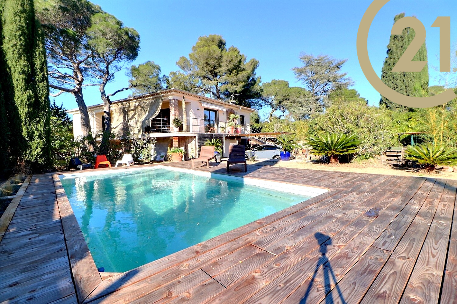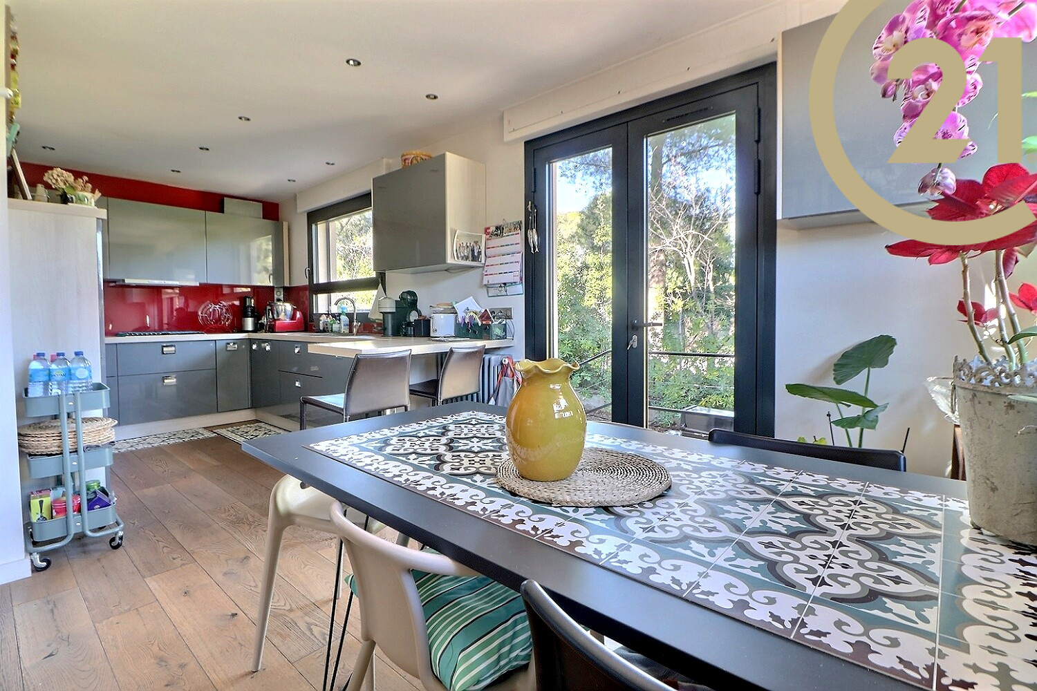SAINT-RAPHAËL BOULOURIS, située dans un quartier très prisé, nous vous proposons une magnifique villa exposée plein sud et édifiée sur un terrain de 1200 m². Elle se compose de plain-pied : d'un hall d'entrée, d'un grand séjour de plus de 30 m² avec baies à galandage donnant sur une terrasse de 50 m², d'une cuisine indépendante, de deux chambres dont une avec salle d'eau et une seconde avec salle d'eau et WC ainsi qu'un second WC indépendant.
