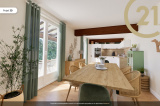 Elle se compose en rez-de-chaussée d'une entrée avec WC invité, d'une cuisine indépendante et d'un double séjour avec cheminée-insert. A l'étage vous disposez de 4 chambres, d'une salle de bains, d'un WC et d'un petit espace bureau-rangement. L'étage bénéficie d'une belle terrasse et d'un escalier extérieur.