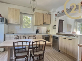 Le rez-de-chaussée, entièrement rénové en 2022 avec de bonnes prestations est composé d'un beau salon de 33m², d'une cuisine de 14m² avec arrière cuisine buanderie et cave a vin, de deux chambres de plain pied de 13m² environ, d'une salle d'eau.