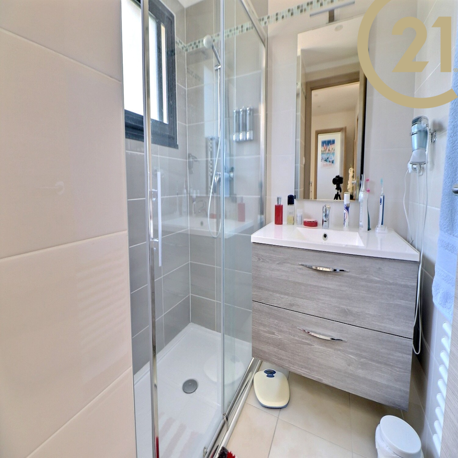 Les prestations : climatisation réversible, panneaux photovoltaïques, chauffe-eau plat performant, volets roulants électriques, garage carrelé et motorisé et place de parking privative.