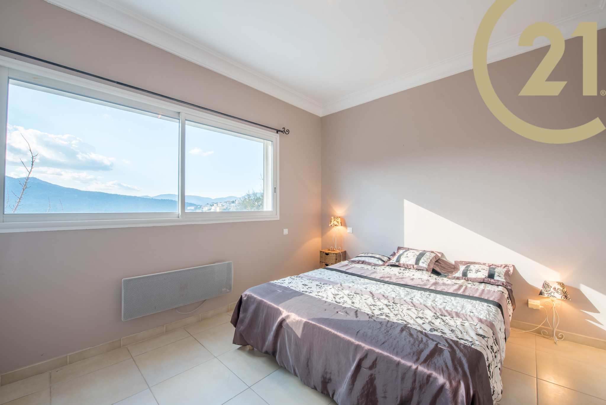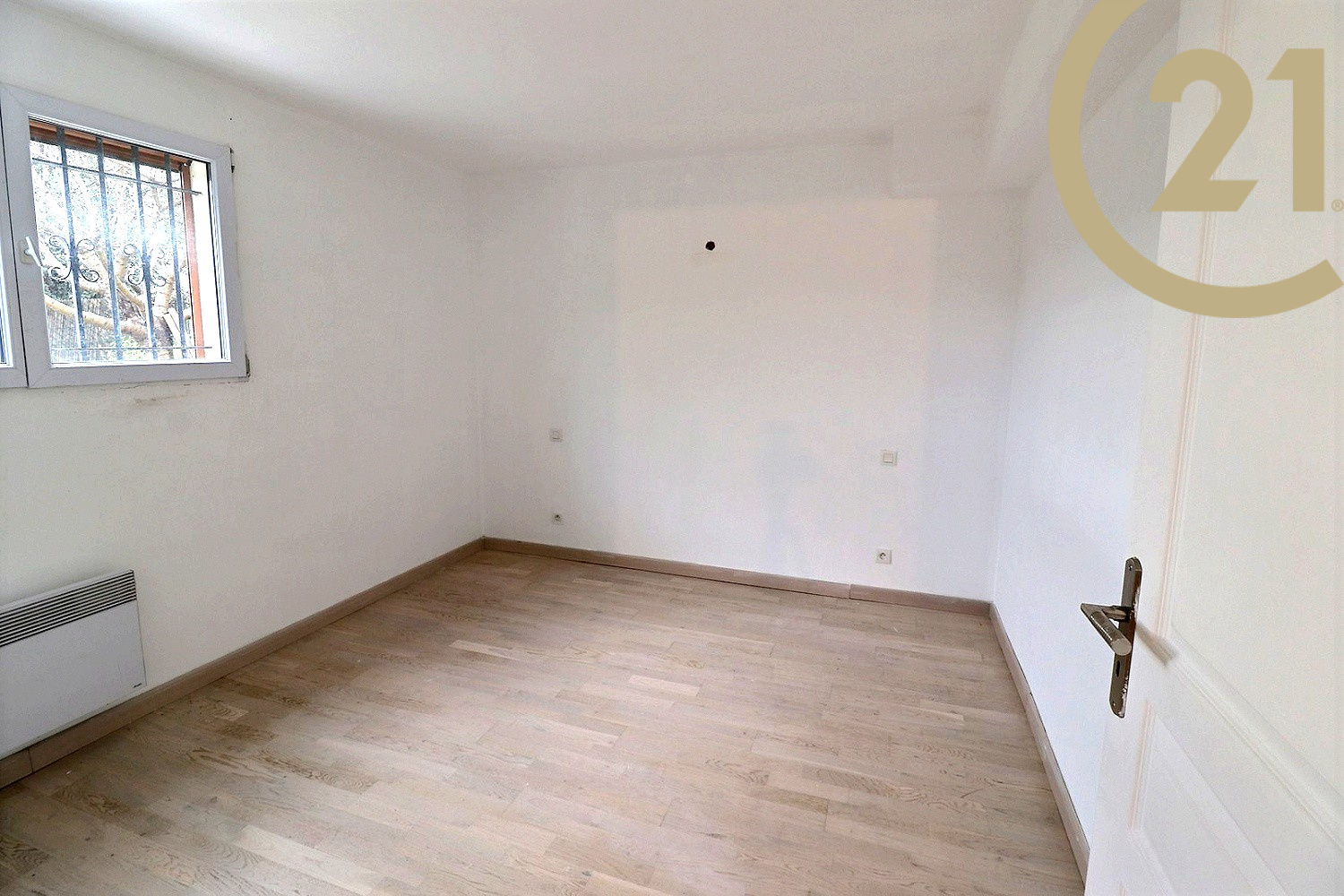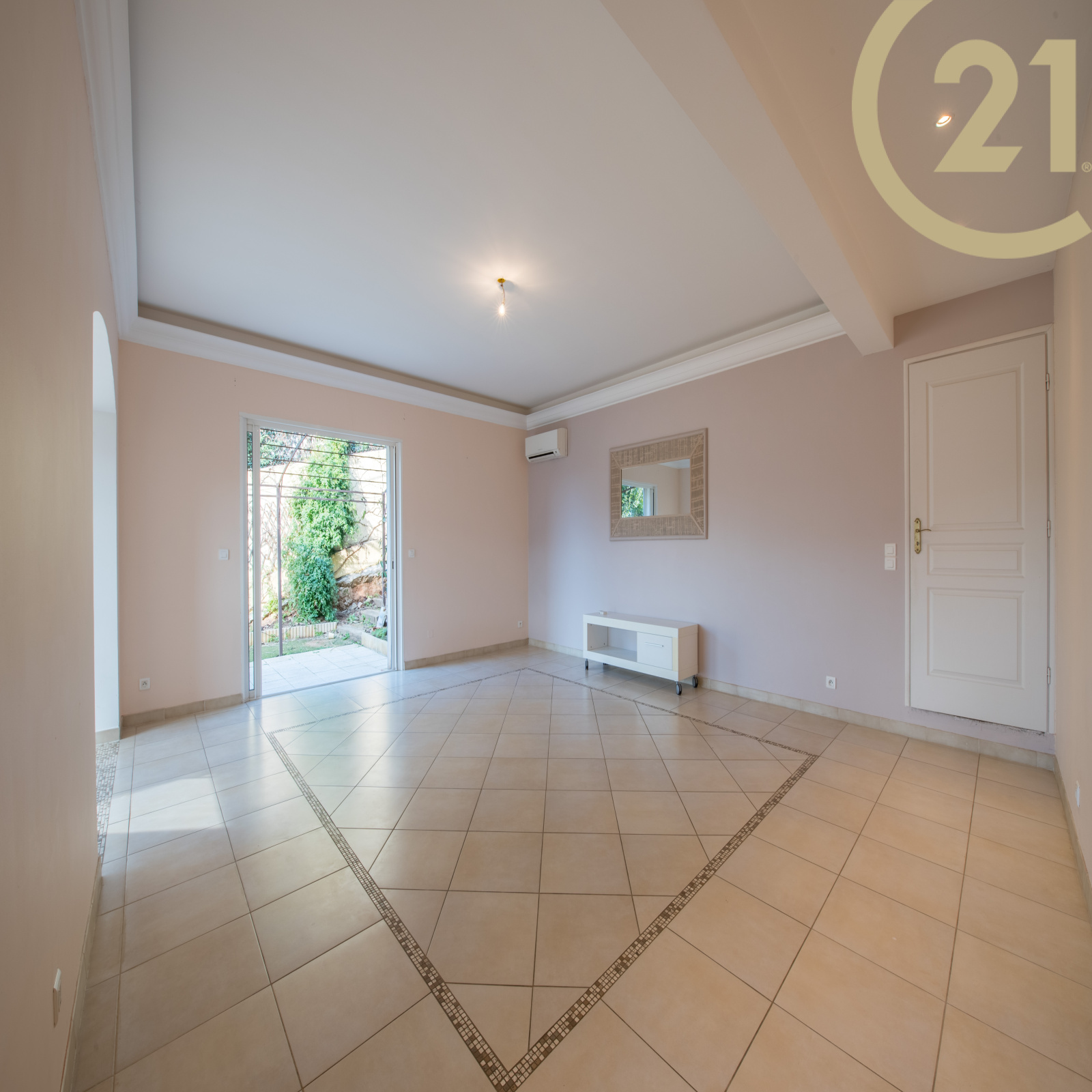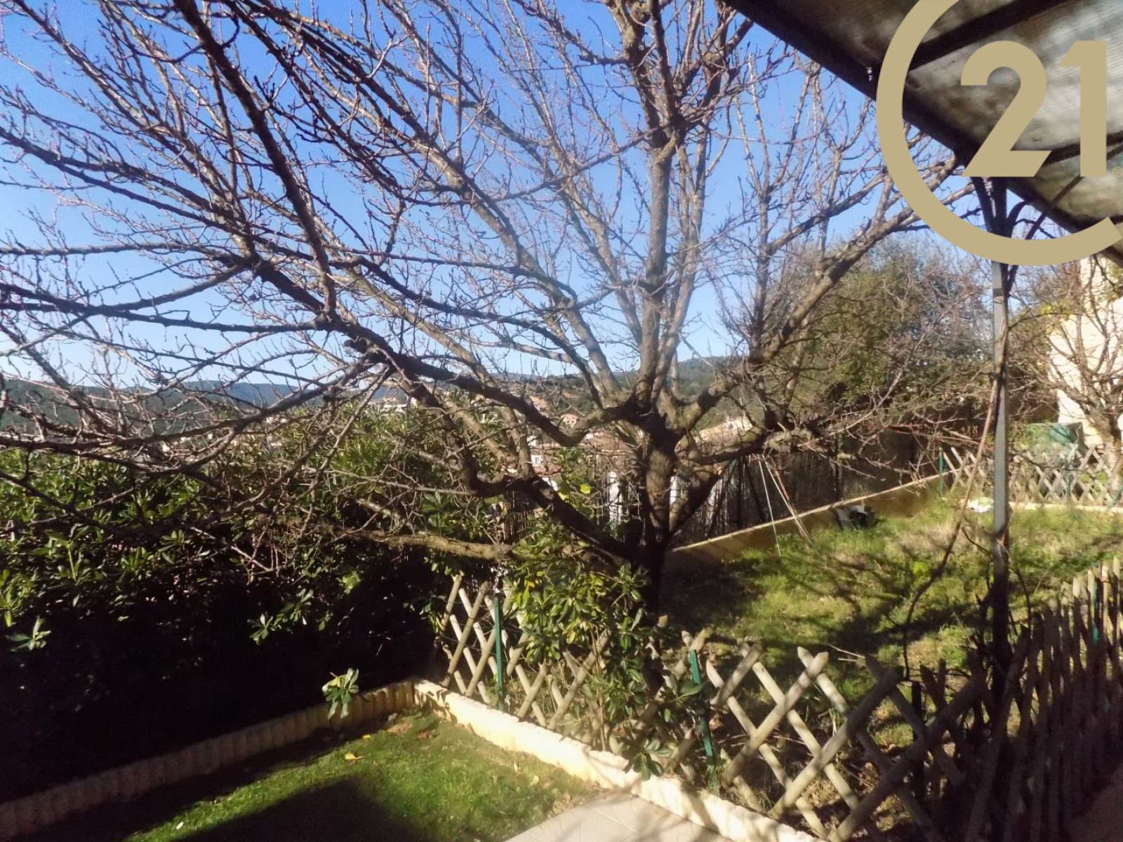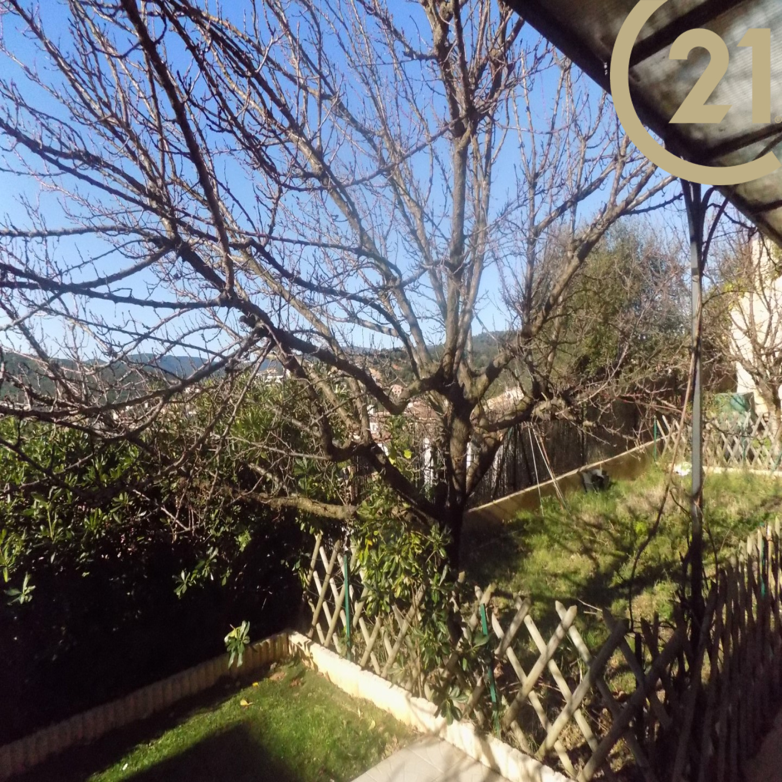 En rez-de-jardin, un appartement d'environ 50 m², salon, cuisine équipée, chambre, salle d'eau, cave de 35 m² et vide sanitaire, jardin d'environ 70 m² en exposition sud. Vue collines.