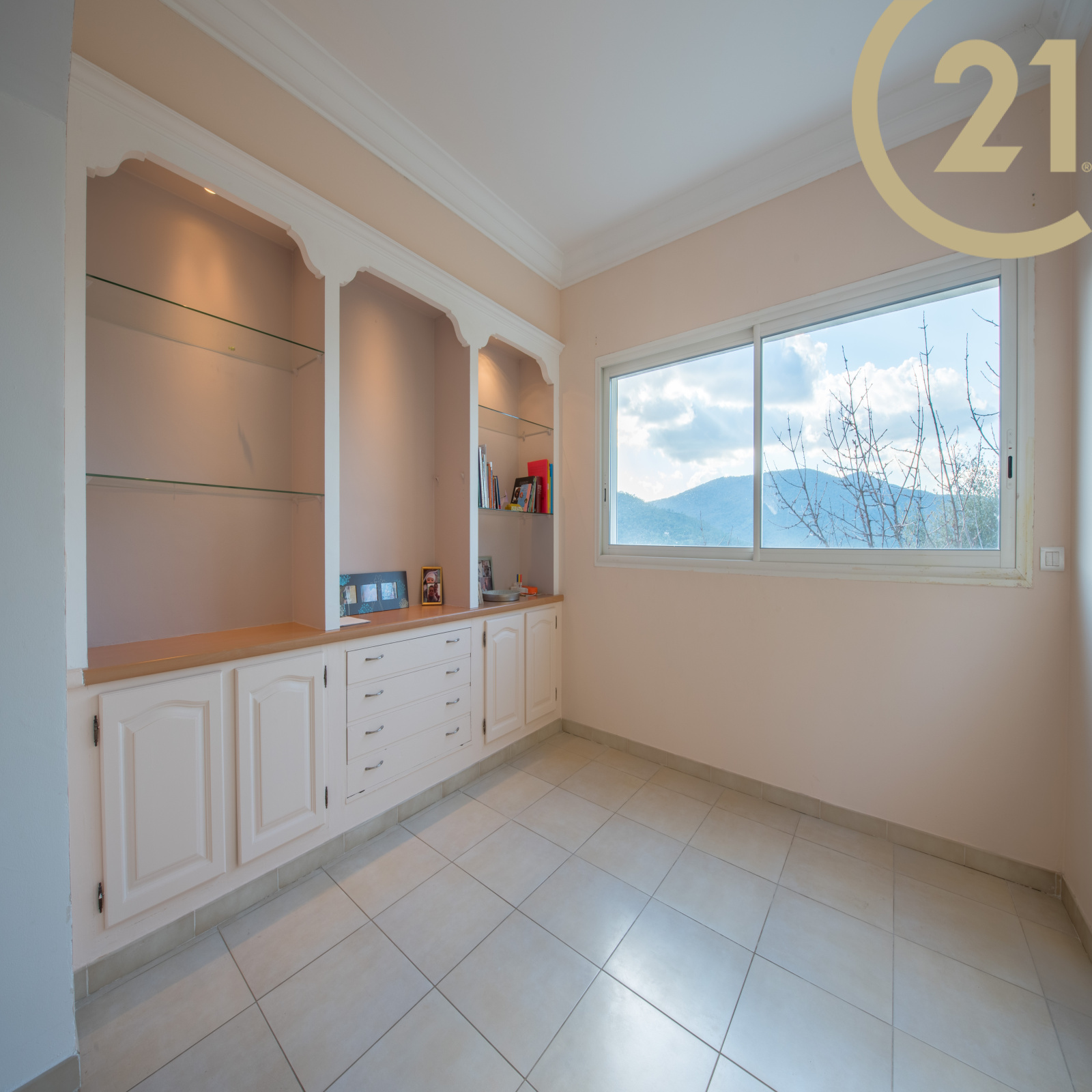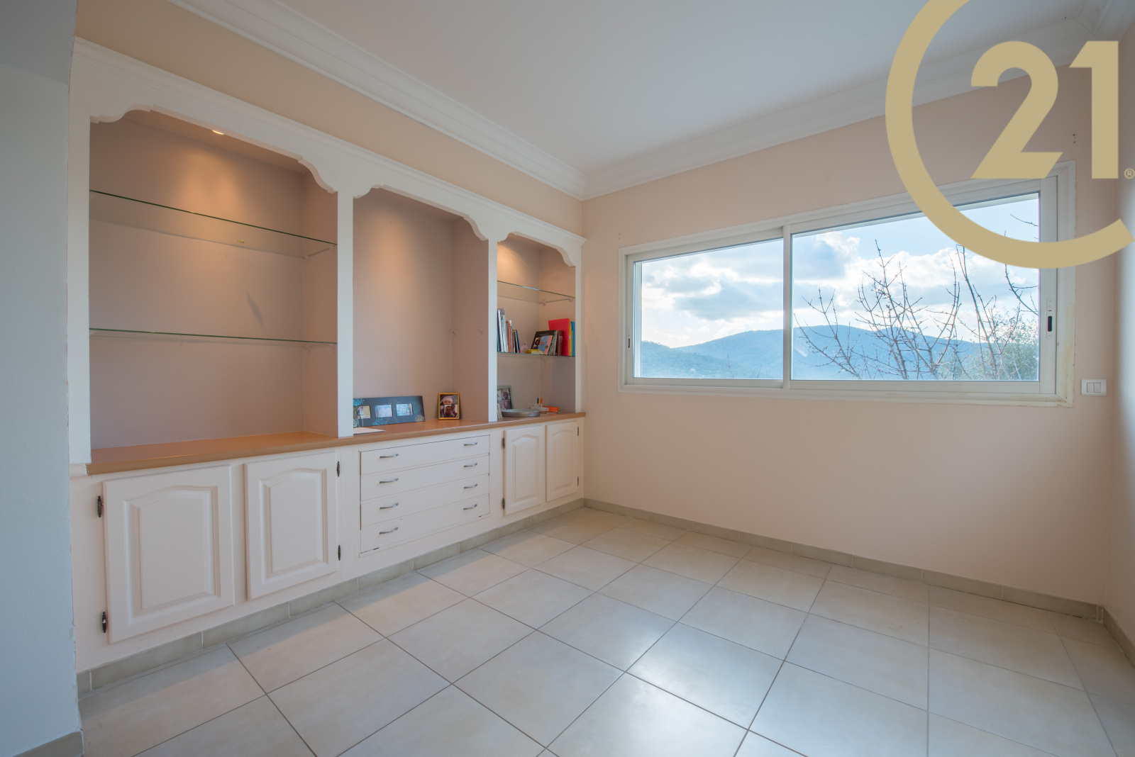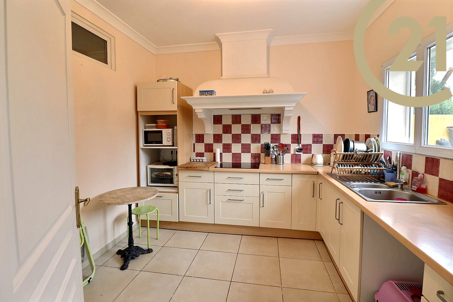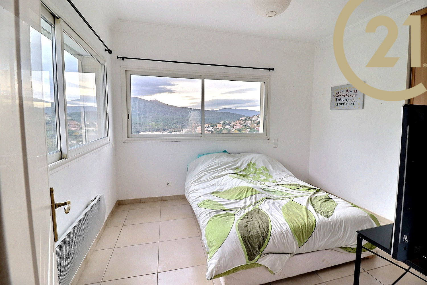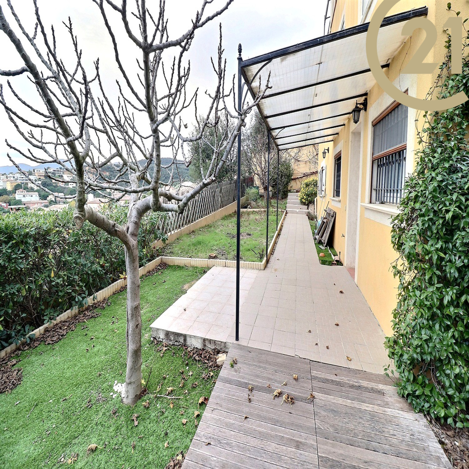 En rez-de-jardin, un appartement d'environ 50 m², salon, cuisine équipée, chambre, salle d'eau, cave de 35 m² et vide sanitaire, jardin d'environ 70 m² en exposition sud. Vue collines.