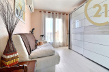 A l'étage l'espace nuit comprend 3 chambres avec placard dont une avec un joli balcon et une belle vue mer sur le cap d'Antibes. Un espace mansardé est actuellement aménagé en chambre avec une douche.