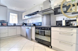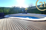 Elle se compose d'une belle pièce de vie avec avec cheminée insert s'ouvrant sur une terrasse plein sud avec sa piscine, d'une cuisine US aménagée et équipée avec appareils électroménager haut de gamme, d'un wc invité et d'un accès garage.