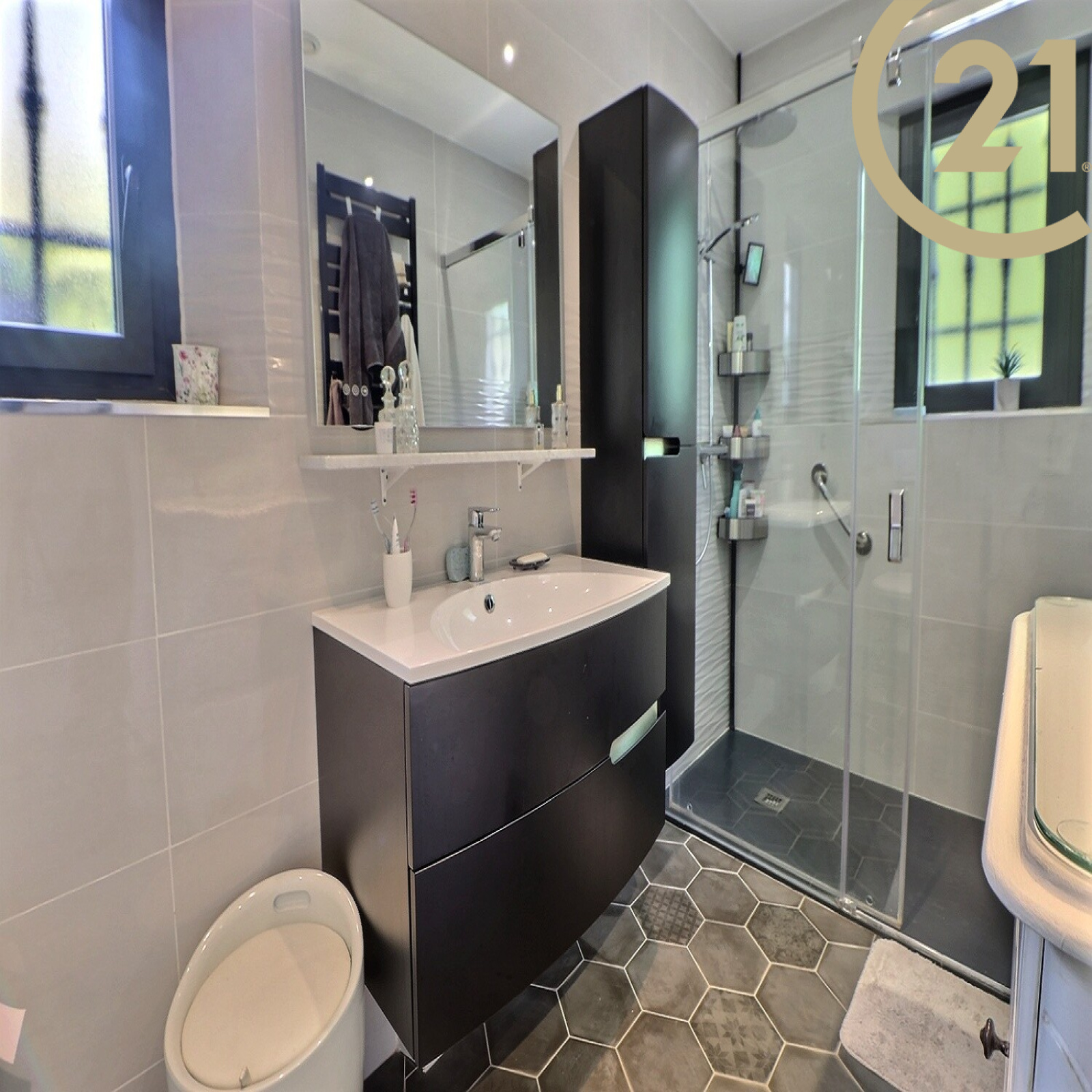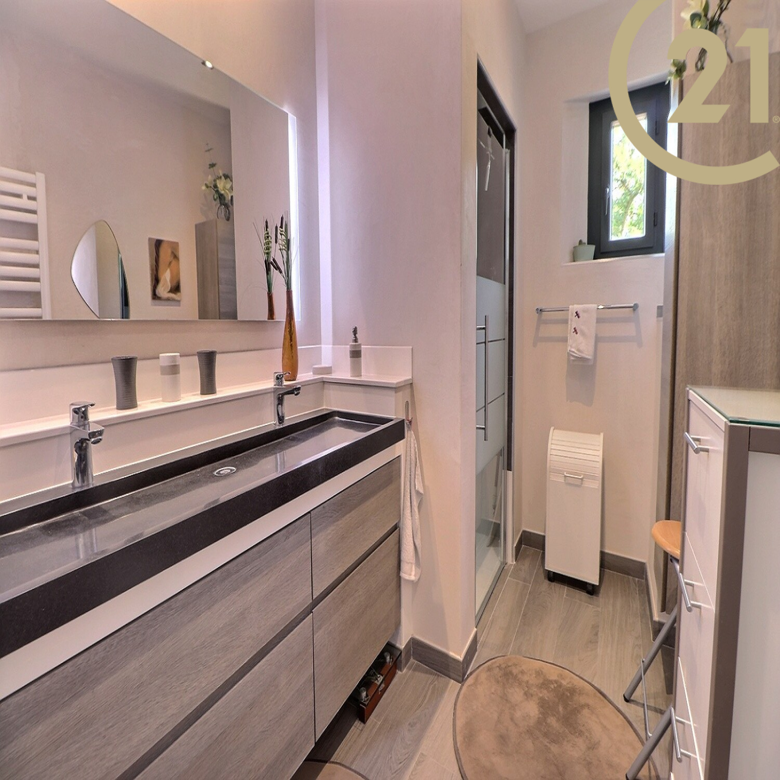 À l’intérieur, vous trouverez un vaste séjour/salle à manger lumineux de 56 m², une cuisine indépendante parfaitement équipée, 4 chambres avec placards aménagés, 2 salles d’eau modernes dont une avec WC et 2 WC indépendants.