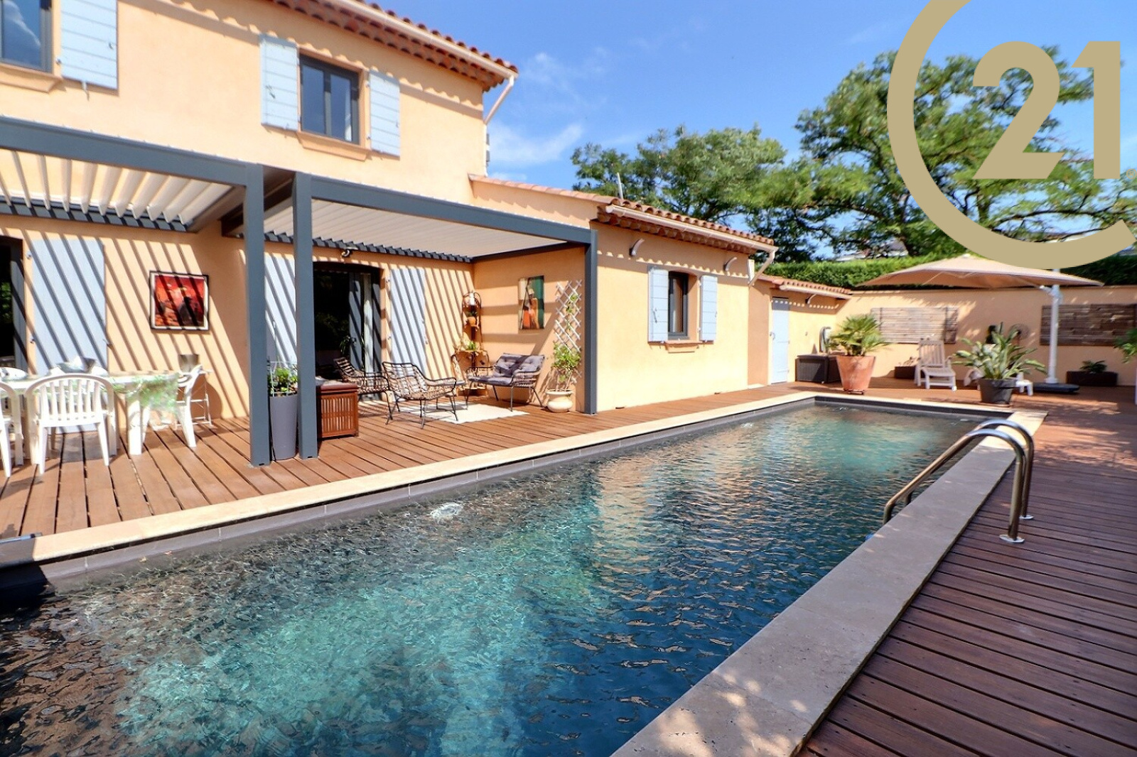 À l’extérieur, tout est pensé pour votre confort et vos loisirs : un garage, un carport, une piscine 10m x 2.80m pour profiter des beaux jours, ainsi qu’une pergola bioclimatique.