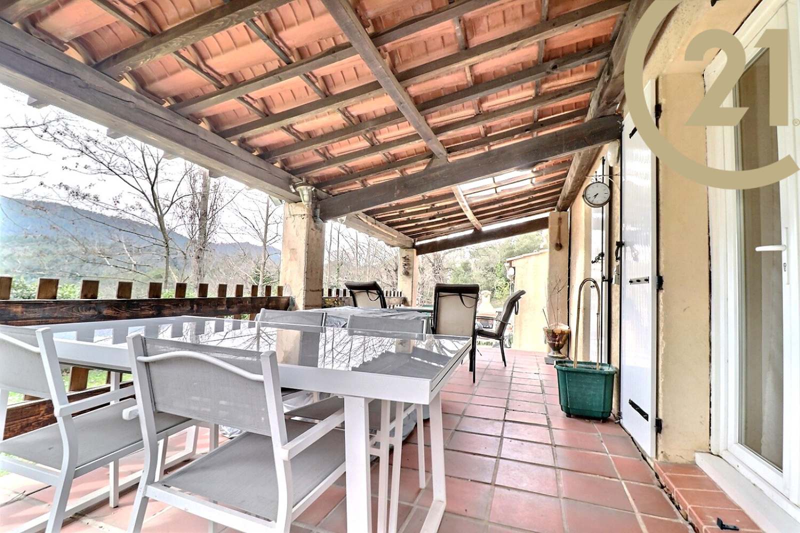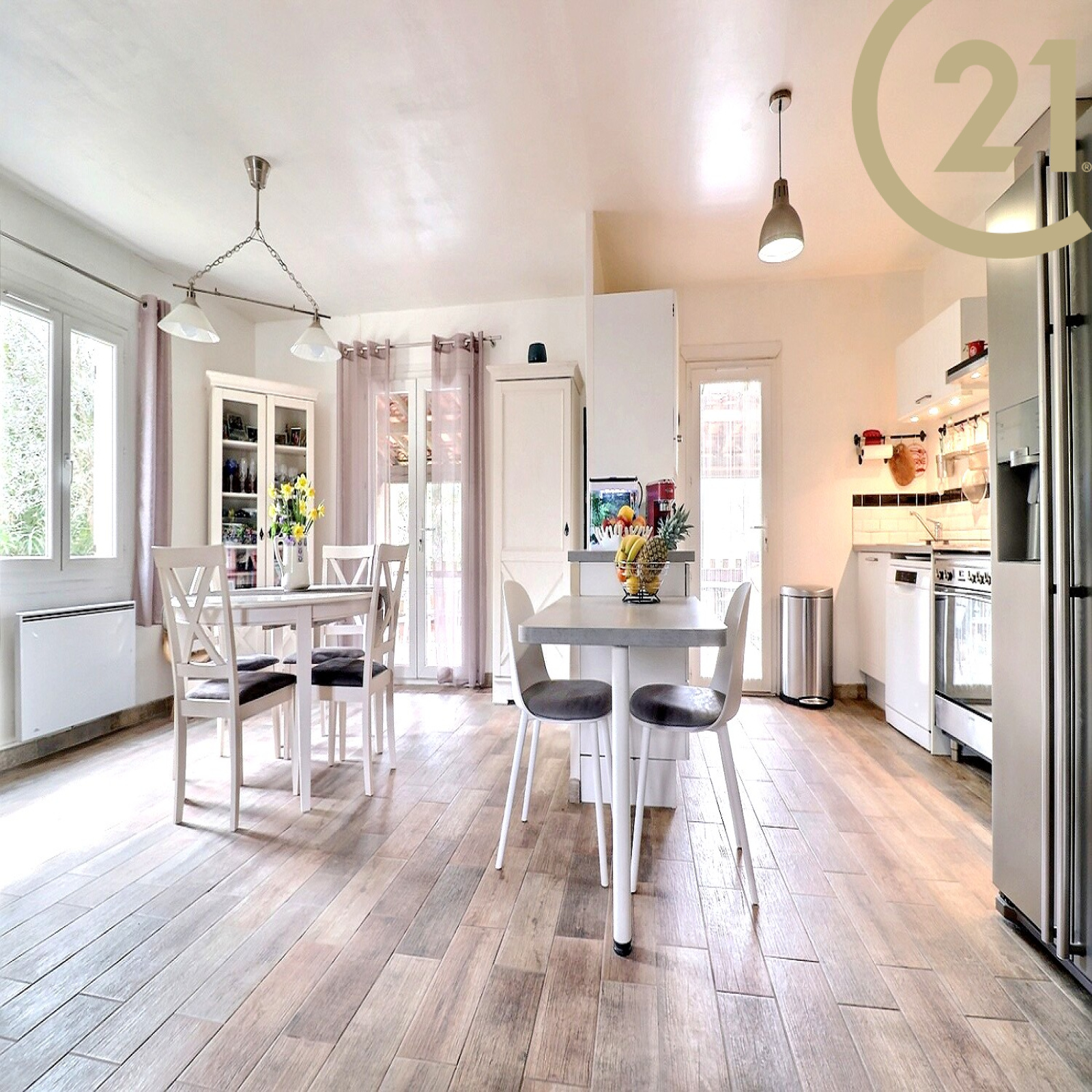 EXCLUSIVITE BAGNOLS EN FORET, En position dominante, villa de plain-pied parfaitement entretenue de 100 m² sur un terrain de 1.005 m². Cette villa entièrement rénovée se compose : d'une entrée, d'un double séjour avec cheminée donnant sur une terrasse exposée Sud, d'une cuisine ouverte entièrement équipée, de trois chambres avec placards, d'une salle d'eau moderne, et d'un WC indépendant. Double garage attenant. Cette maison est implantée sur un terrain plat et piscinable de 1.005 m² avec abris voitures.