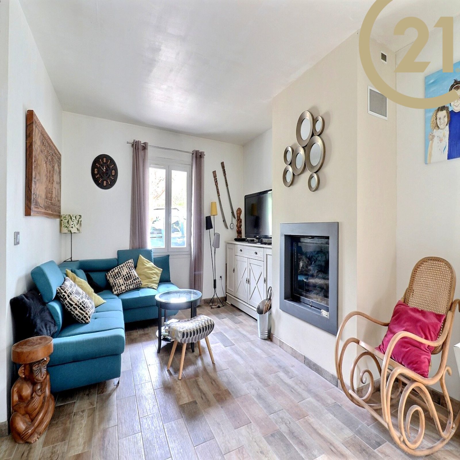 Belles prestations : Cheminée, double vitrage, volets PVC, moustiquaires, store extérieur...
