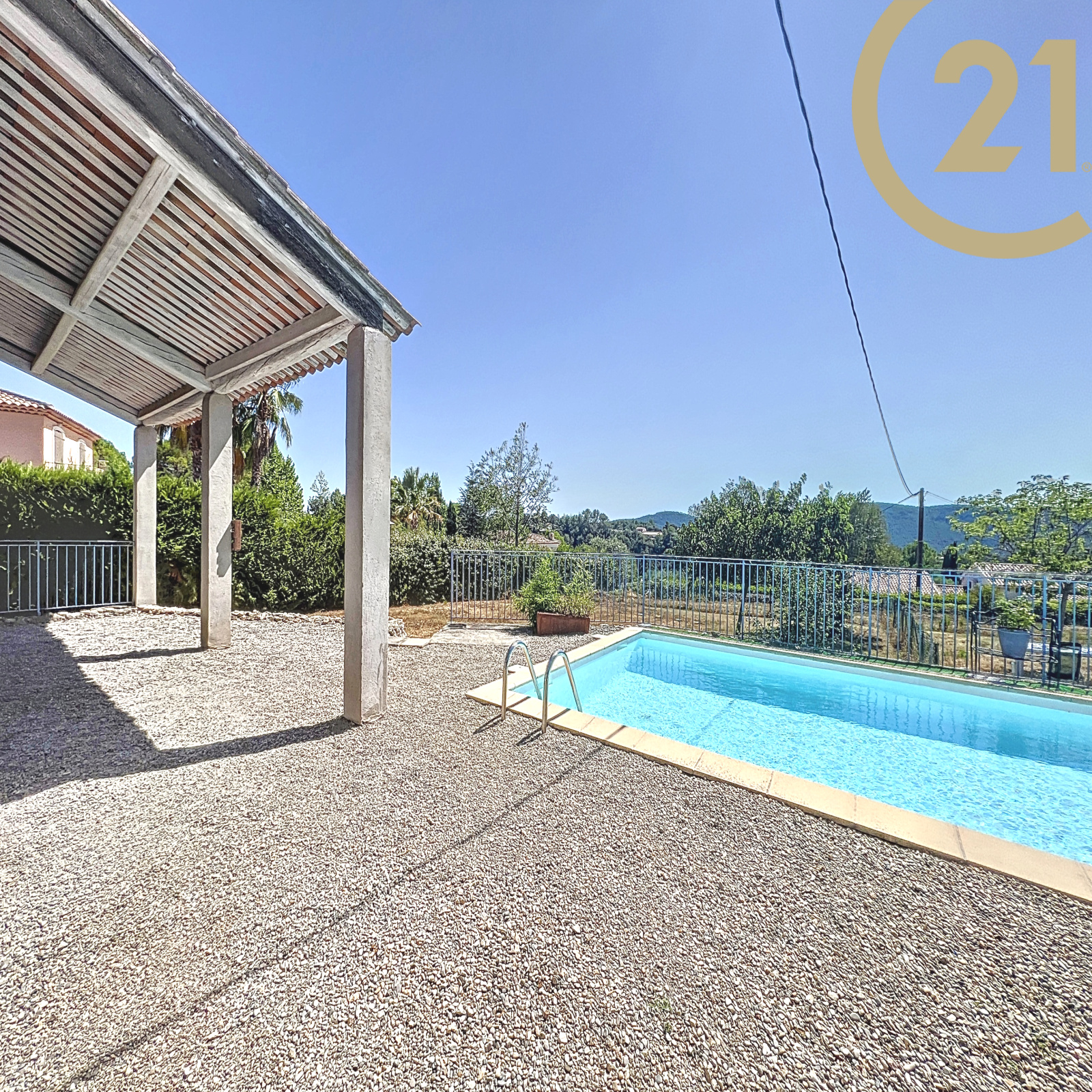 VENTE - BAGNOLS-EN-FORET - Belle villa de 98 m2 construite en 2008 sur un terrain de 984 m². Elle se compose : d'un grand séjour de 51 m² avec cuisine ouverte, de deux chambres de 17 m² et 11.25 m², d'une salle d'eau et d'un WC indépendant.