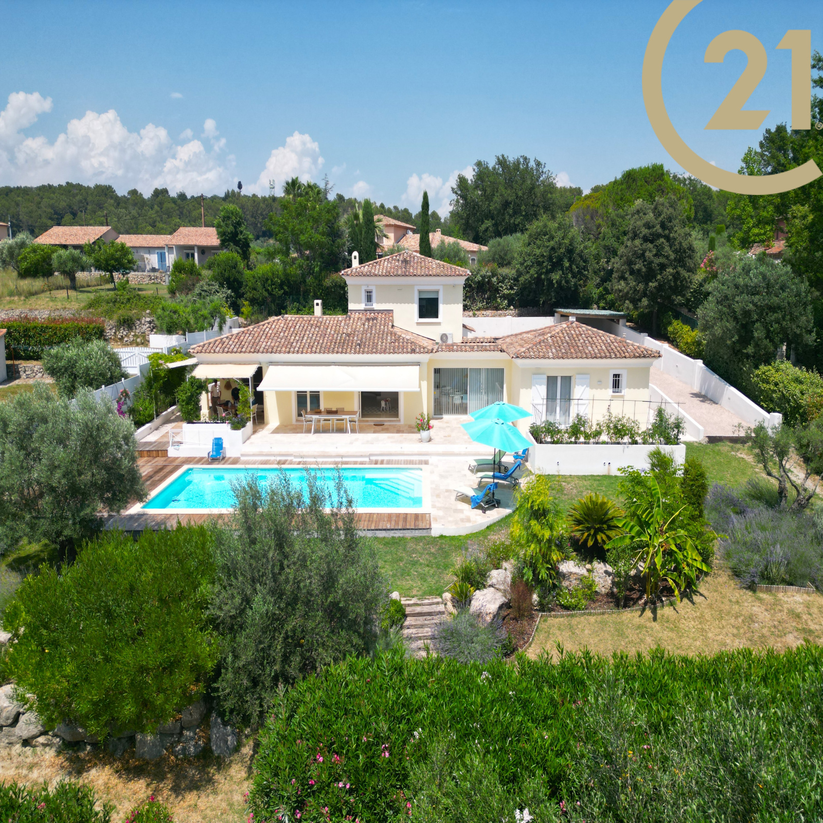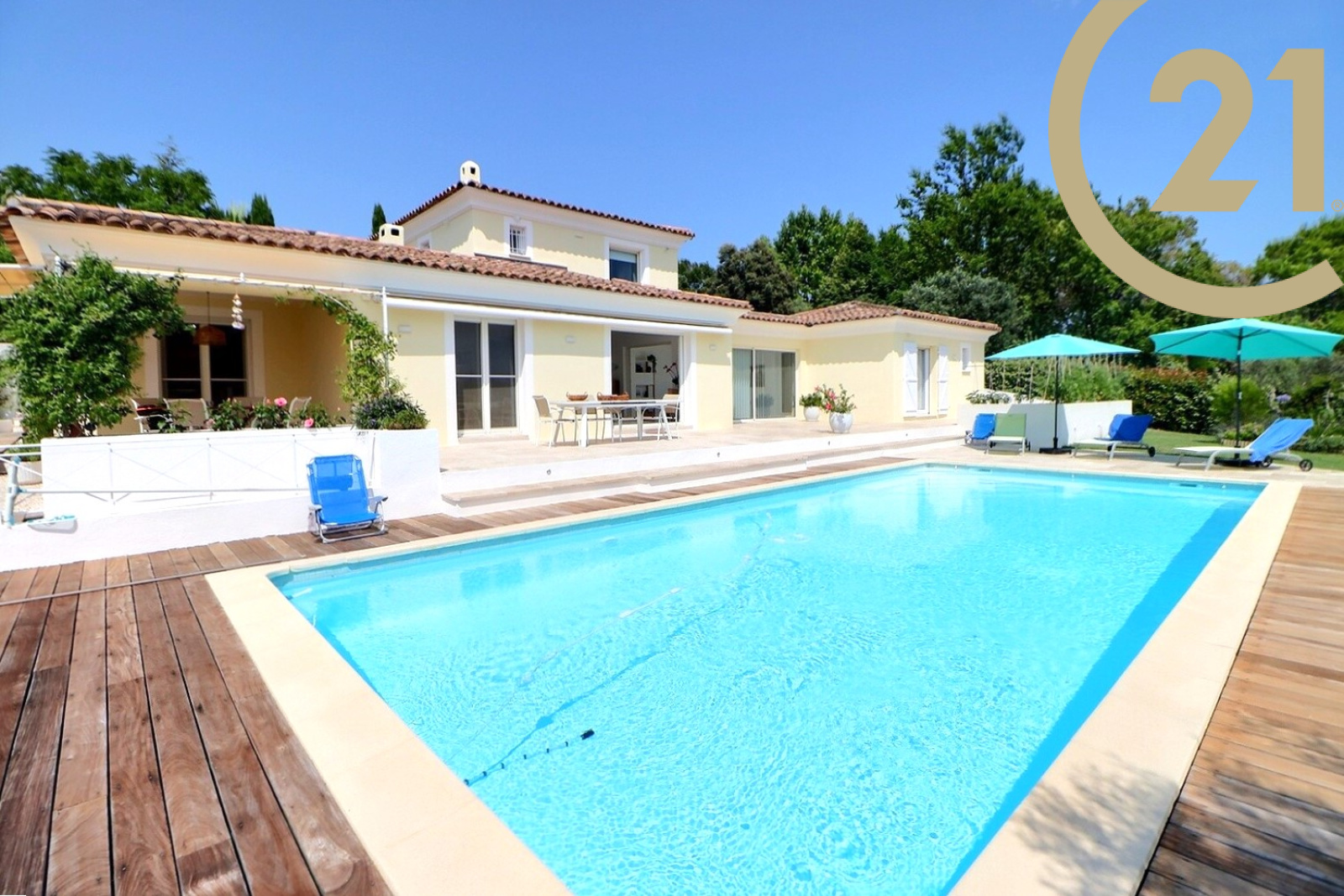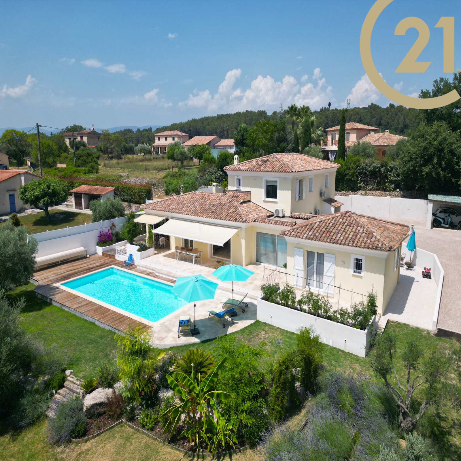 VENTE EN EXCLUSIVITE - BAGNOLS EN FORET - Située à Bagnols-en-Forêt, à 20 minutes de Fréjus et à 40 minutes de Sophia-Antipolis, à proximité des commodités du centre-ville de Bagnols-en-Forêt découvrez cette villa 6 pièces au style contemporain méditerranéen de 271,49 m² au sol dont 206 m² habitables édifiée sur un terrain paysager et entièrement clos de 2326 m² avec potager et verger.
